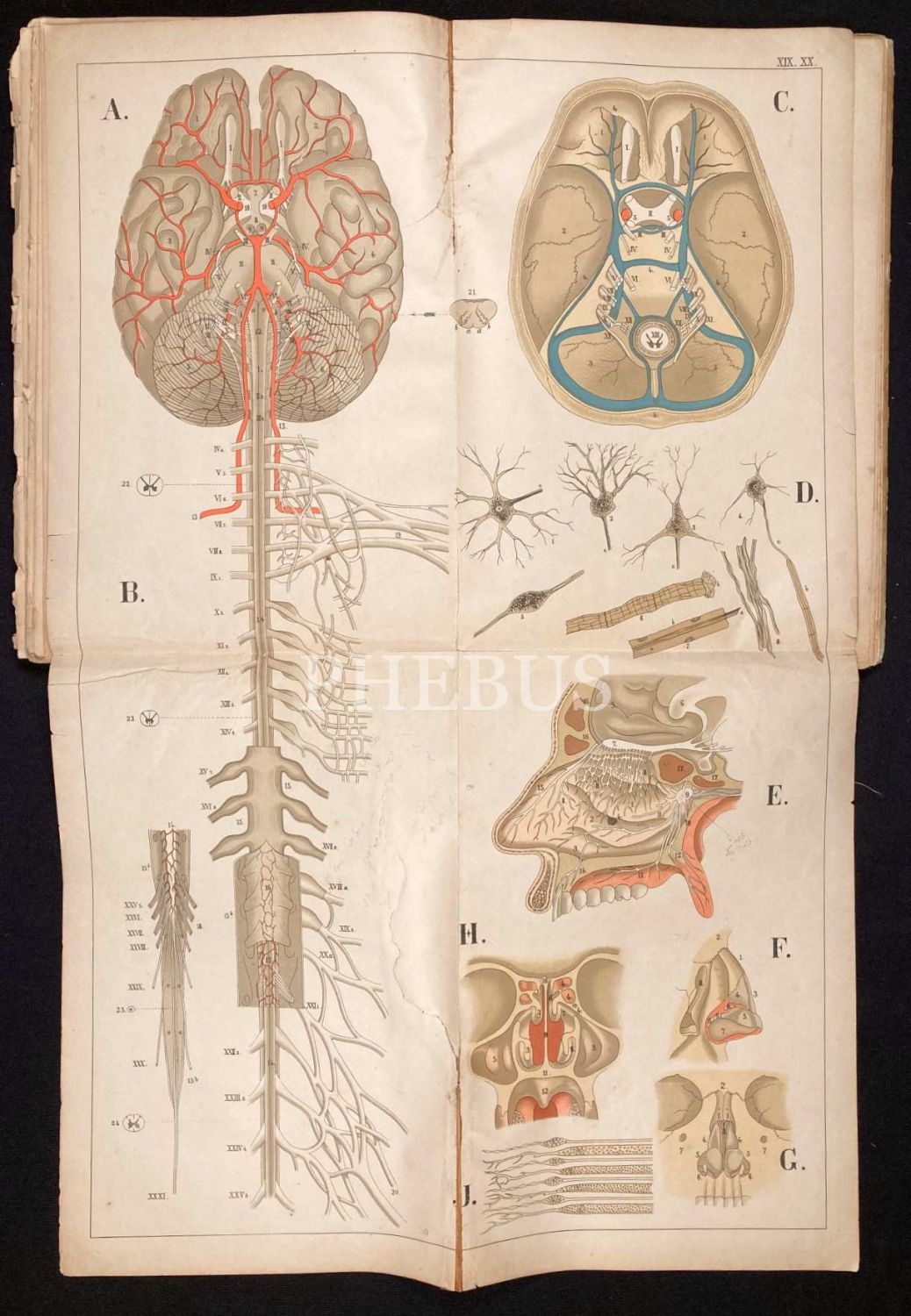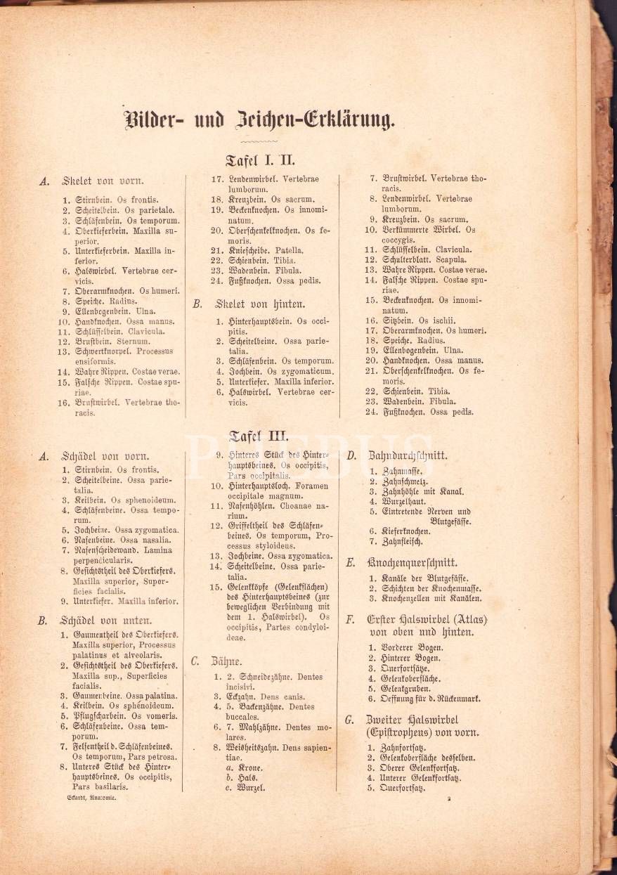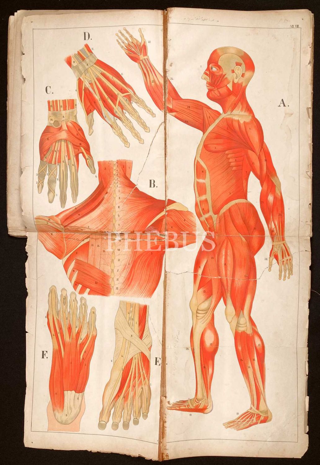 Almanca Bir Anatomi Kitabı: Der Bau des Men Lihchenkörpers [Erkek Vücudunun Yapısı], Thodor Edardt, 1879, Sphyra C. Freres Constantinople damgalı, 23 sayfa+23 görsel mevcut, oldukça yıpranmış hâlinde, 23x33 cm