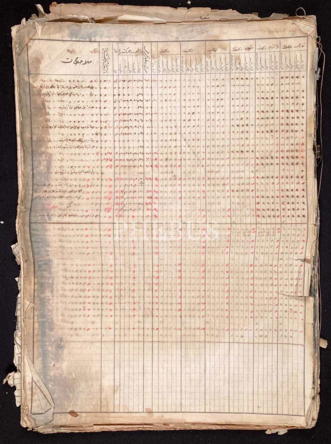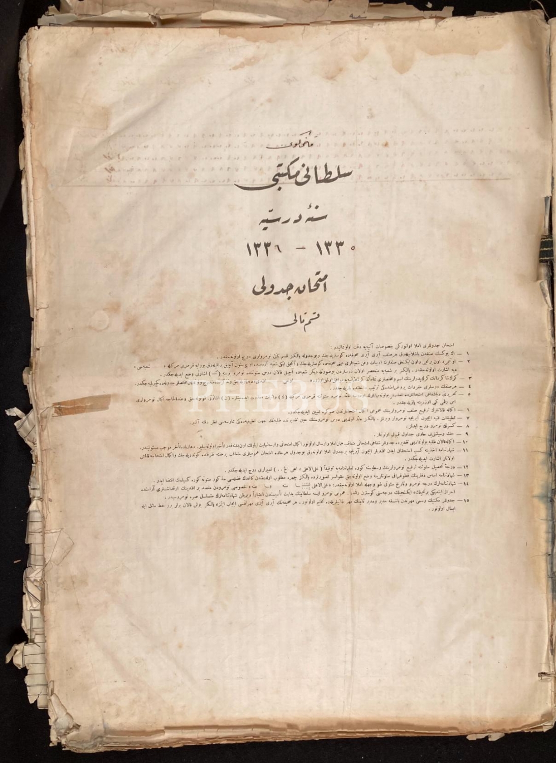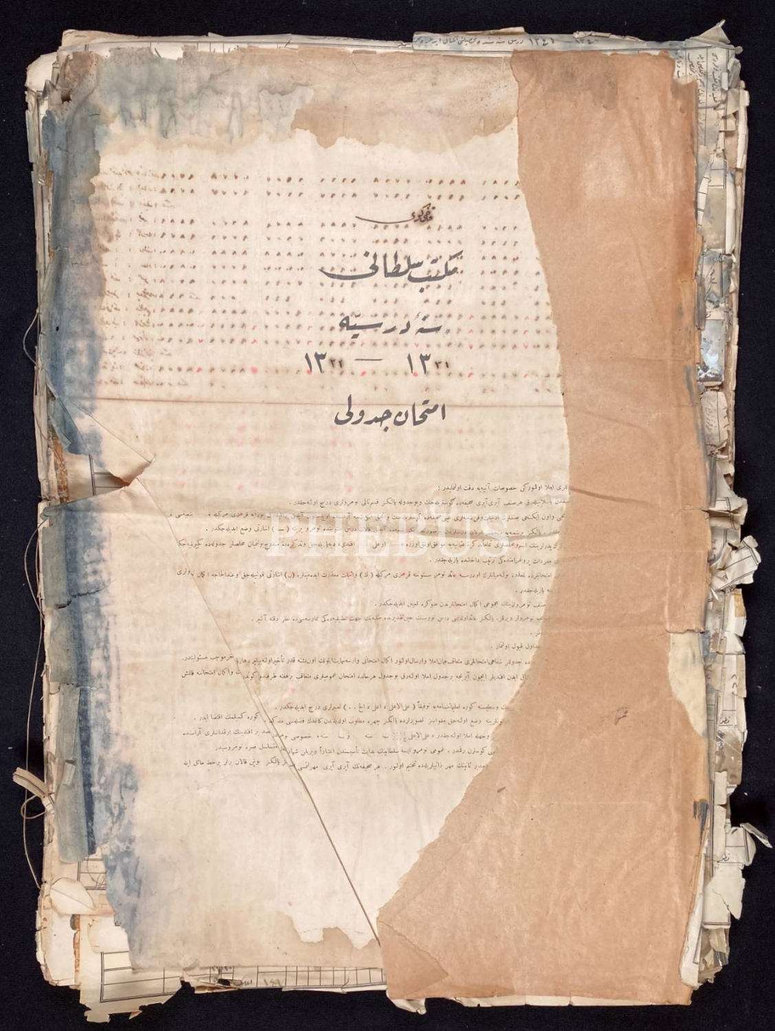 Birinci Cihan Harbi Esnâsında Kadıköy Sultanî Mektebi'nin 1333-1334 İmtihan Cetvelleri, 91 varak, oldukça yıpranmış halde, eksikleri mevcut, 43x63 cm