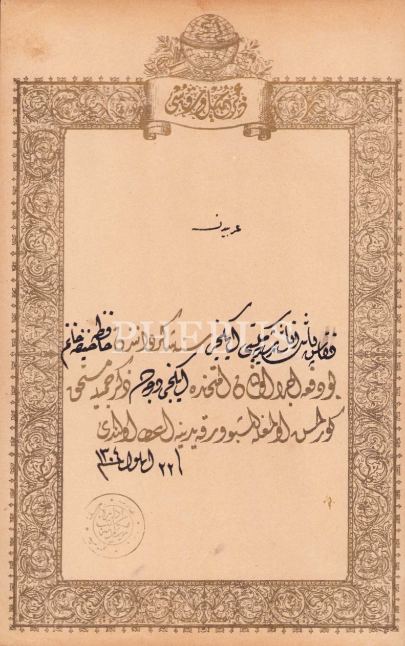 İnas Rüşdiye Mektebi Talebelerinden Hanife Hanım'a Arapça Dersinden Verilmiş İkinci Derece Zikr-i Cemil Varakası, 1304 târihli, 16x27 cm