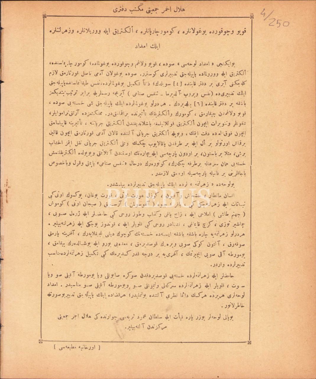 Osmanlıca Hilâl-i Ahmer Cemiyeti Mekteb Defteri, 20x23 cm