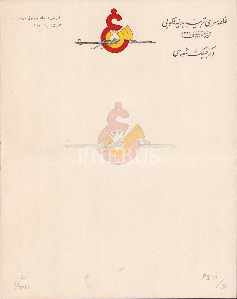 Osmanlıca Galatasaray Terbiye-yi Bedeniye Kulübü Denizcilik Şubesi Antetli mektup kağıdı ve Galatasaray Kulübü armalı iki adet zarf, kağıt 23x28, zarflar 15x13 cm'dir