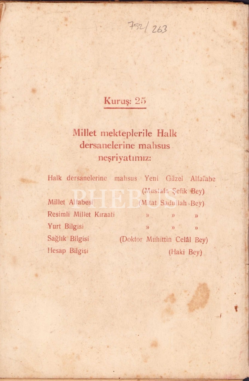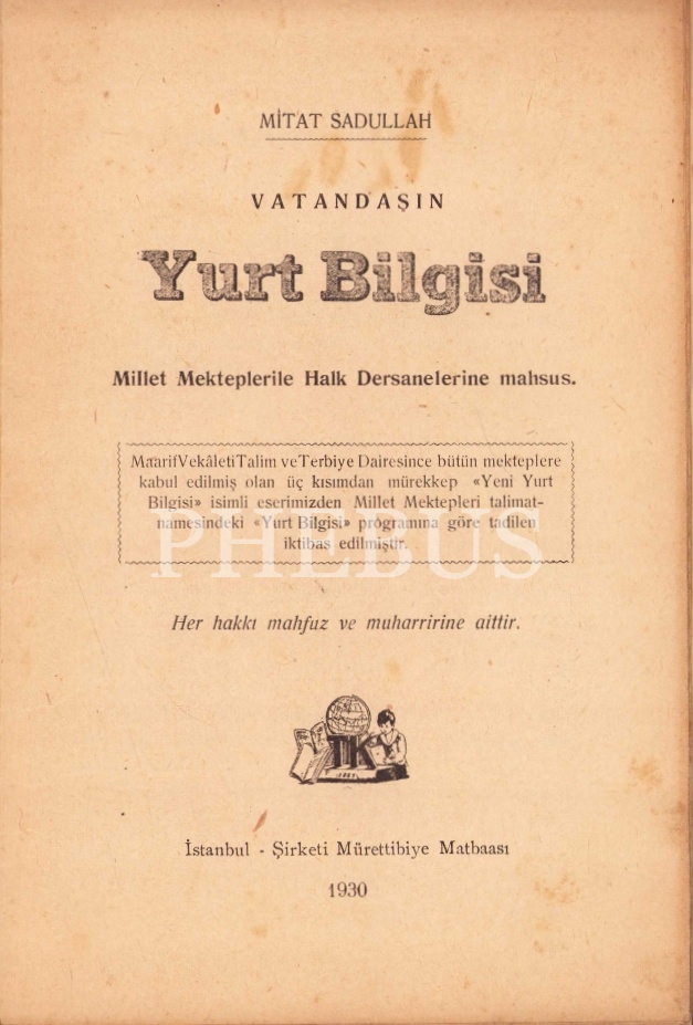 Millet Mekteplerile Halk Dersanelerine Mahsus Yurt Bilgisi, Mithat Sadullah, 1930, 96 sayfa, 15x24 cm