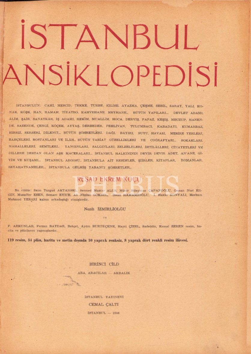 Reşat Ekrem Koçu'nun Hazırladığı Meşhur "İstanbul Ansiklopedisi"nin Birinci Cildi, İstanbul Yayınevi 1946, 384 sayfa, 24x33 cm