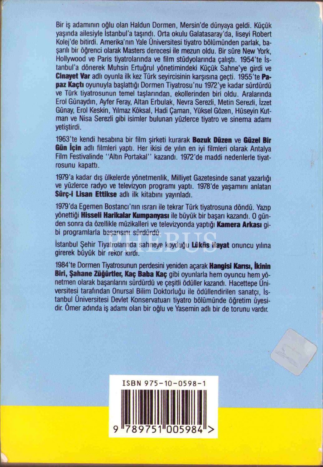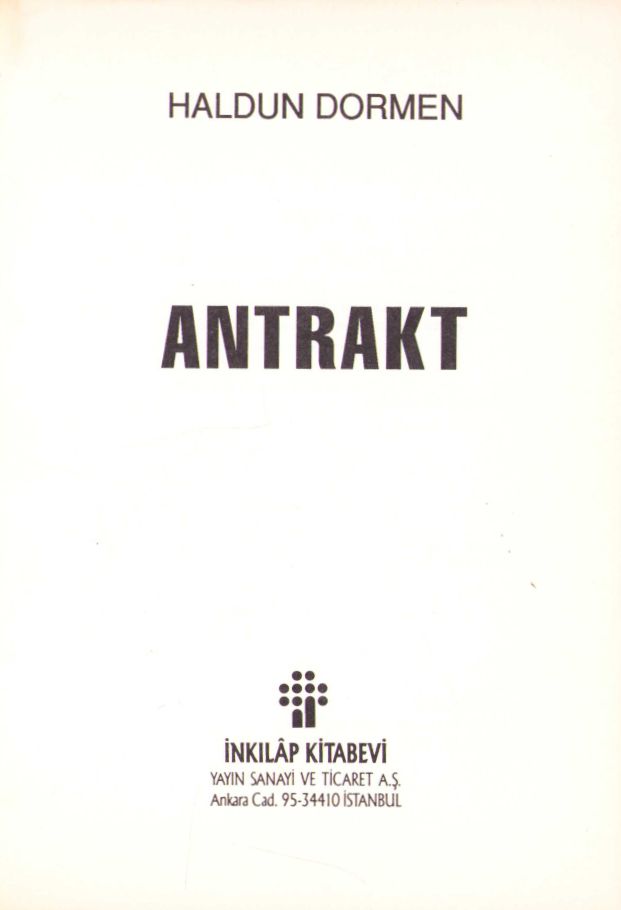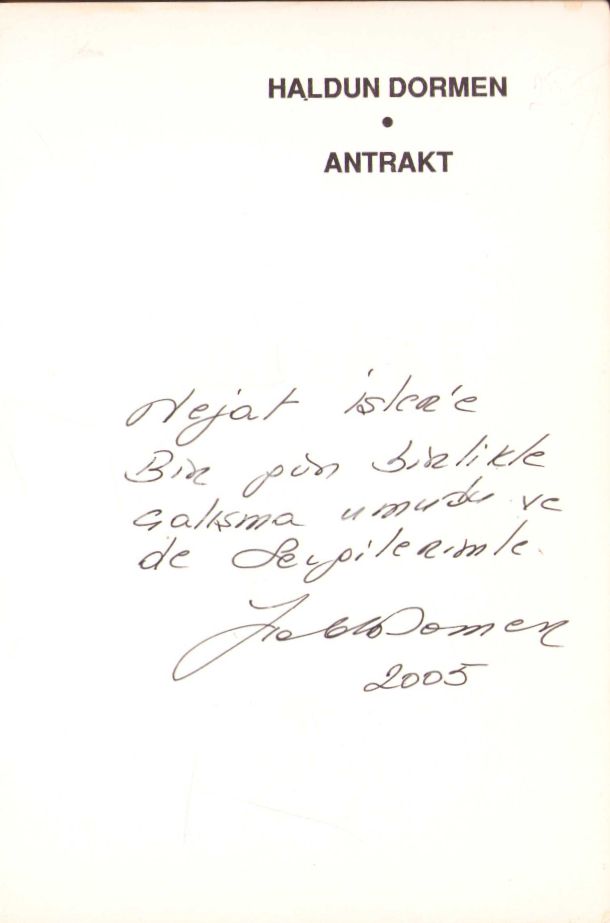 Haldun Dormen'den Nejat İşler'e İthaflı ve İmzalı "Antrakt", İnkılâp Yayınevi, 1993, 226 sayfa, 13x19 cm