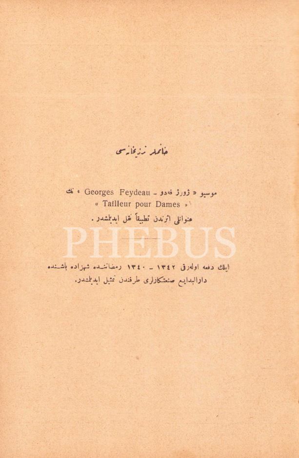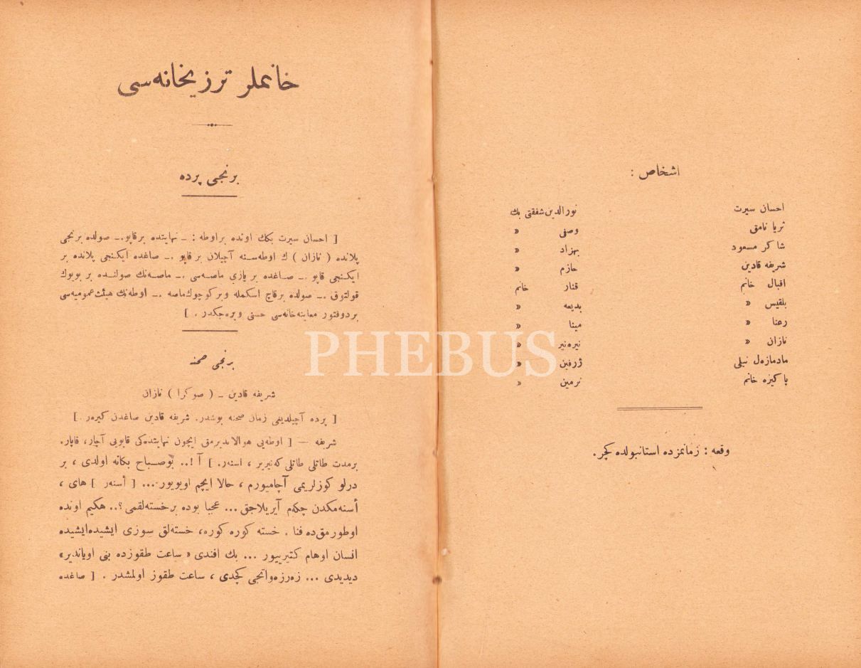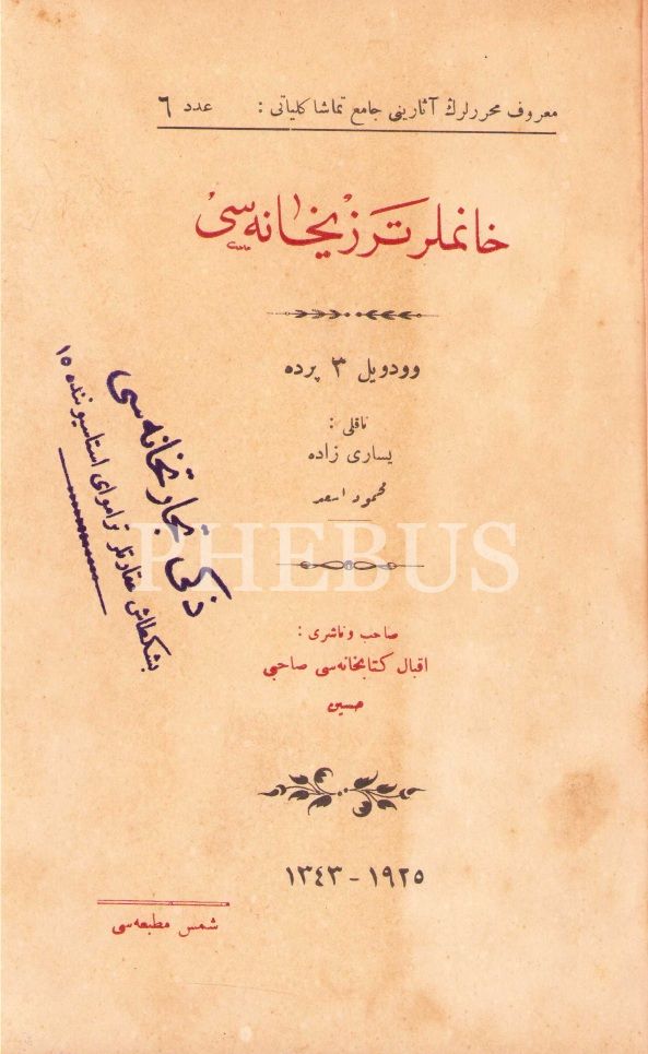 Yesarizade Mahmud Esad'dan Osmanlıca "Hanımlar Terzihanesi, -Vodvil Üç Perde-, İstanbul Şems Matbaası, 1924, 89 sayfa, cilt sırtı yıpranmış haliyle, 14x22