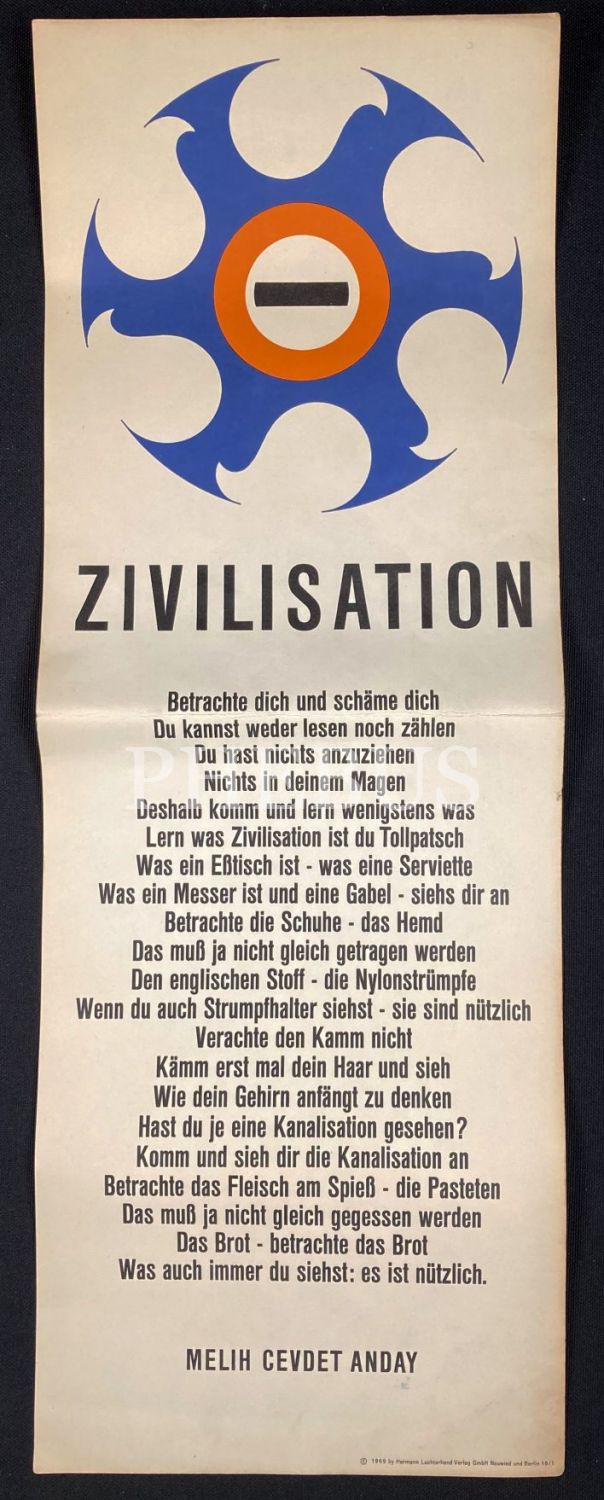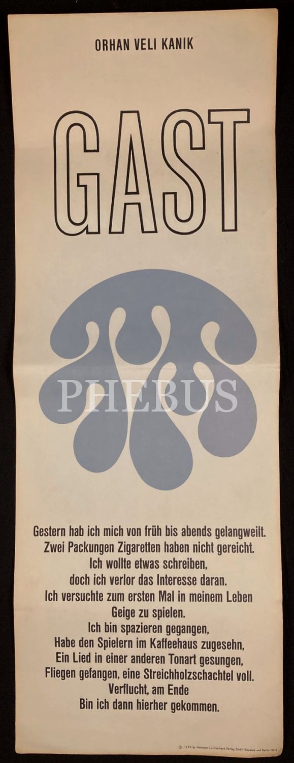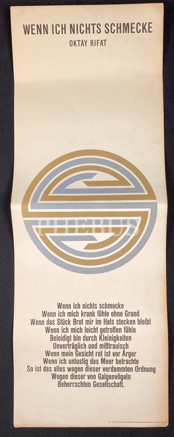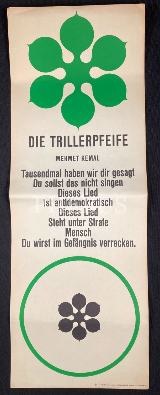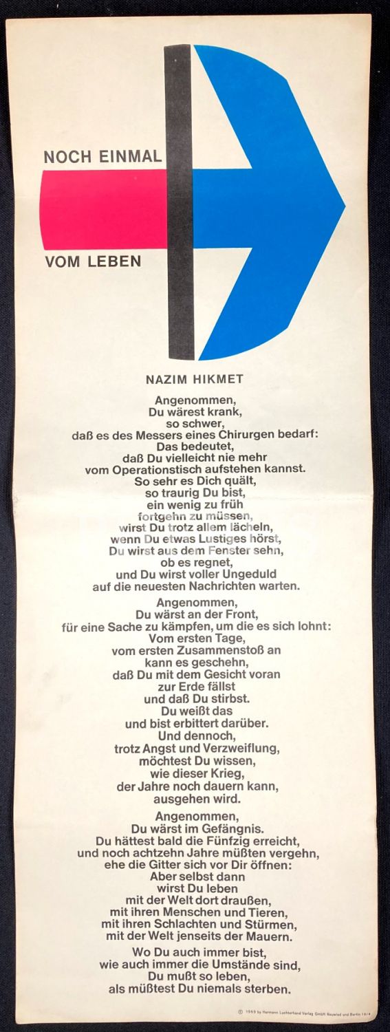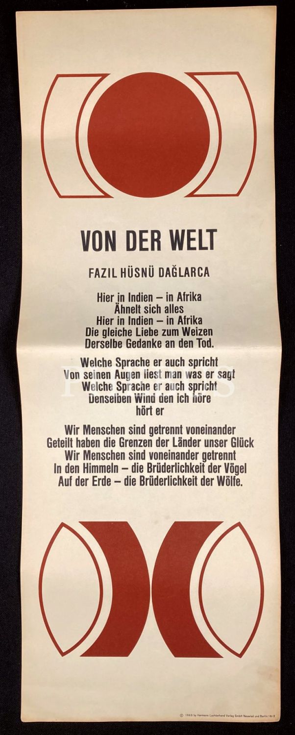 Almanca "Türkische Gedichte [Türkçe Şiirler], Poster Halinde Şairlerimizin Şiirlerinin Almanca Tercümesi, ön kapağı yıpranmış haliyle, 18x 51 cm