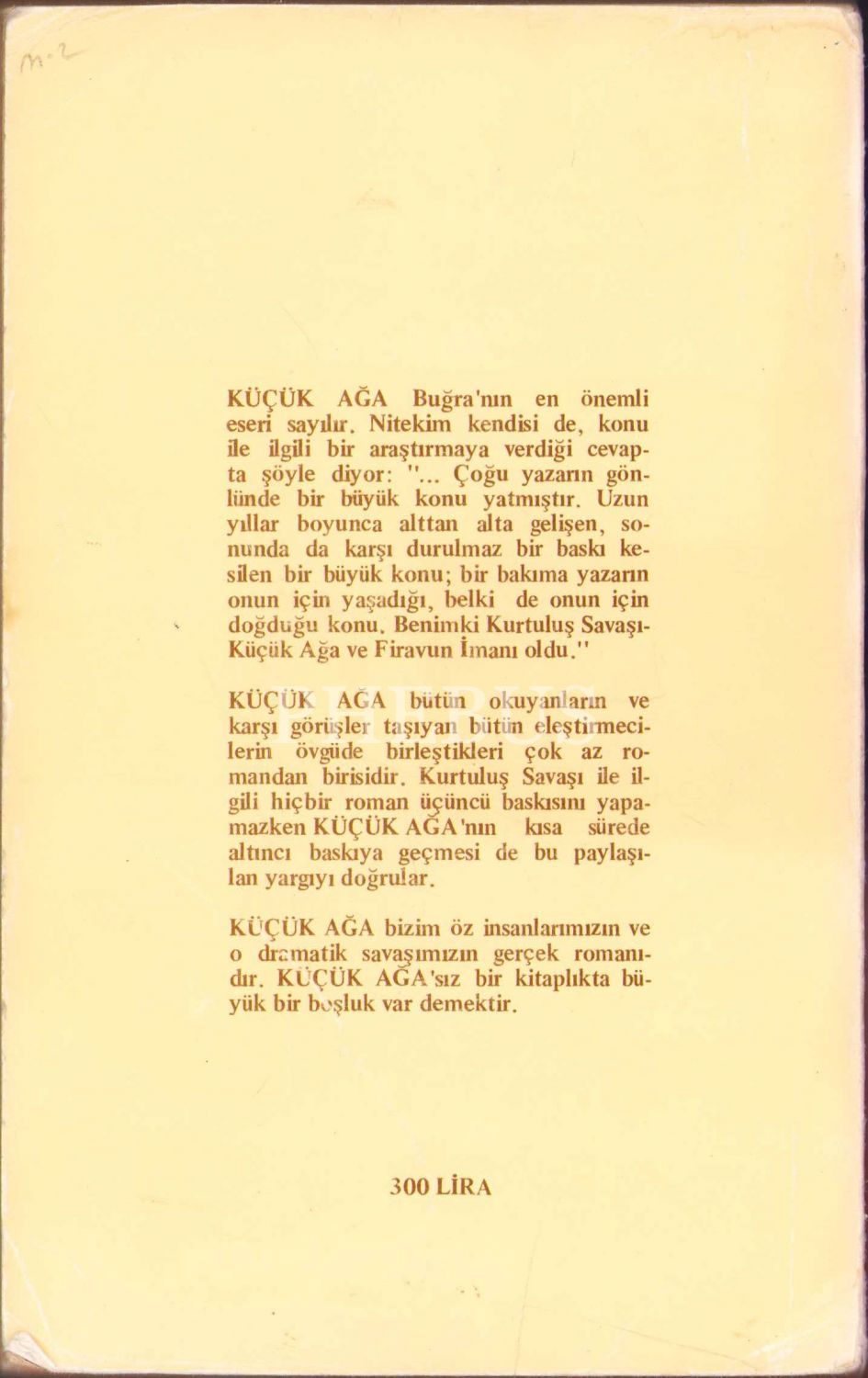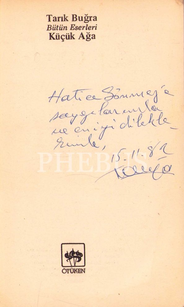 Tarık Buğra'dan İthaflı ve İmzalı "Küçük Ağa, Ötüken Yayınları, 1981, 566 sayfa, kapağı hafif yıpranmış haliyle, 12x19 cm