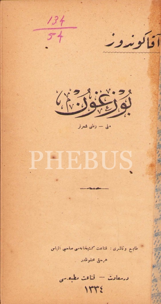 Osmanlıca "Bozgun -Şiir-", Aka Gündüz, Dersaadet Kanaat Matbaası 1334, 102 sayfa, cildi yorgun haliyle, 10x19 cm