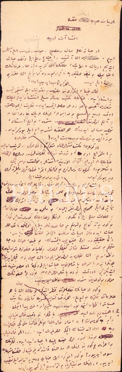 Mehmed Rauf'un Osmanlıca El Yazısıyla Servet-i Fünün Dergisi İçin Yazdığı "İnşaat-ı Edebiyye" İsimli Yazısının Müsveddesi, üzerinde Mehmed Rauf'un tashihleri de mevcut, 3 sayfa, her biri 12x38 cm