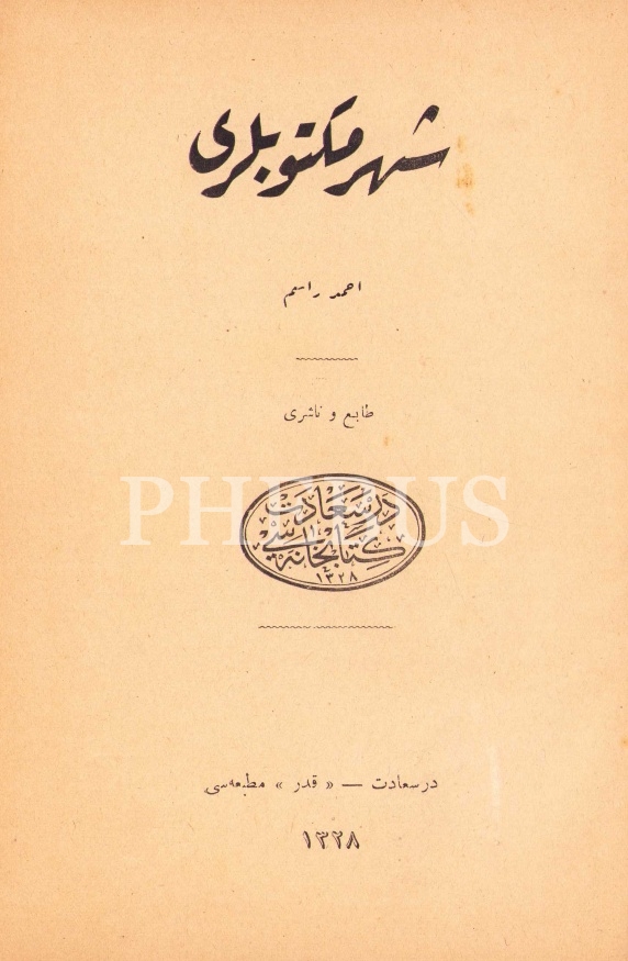Ahmet Rasim'in Meşhur Eseri "Şehir Mektupları", Dersaadet Kadir Matbaası 1328, 208 sayfa, cilt sırtı yıpranmış haliyle, 14x20 cm