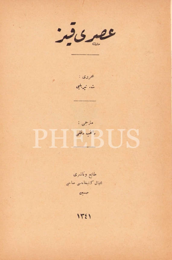 Ragıb Rıfkı'nın Tercüme Ettiği Osmanlıca "Asri Kız" Kitabı, İkbal Kütüphanesi 1341, 264 sayfa, 15x23 cm