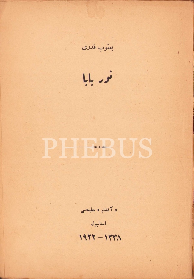 Yakup Kadri'nin Osmanlıca "Nur Baba" Romanının İlk Baskısı, İstanbul Akşam Matbaası 1922, 167 sayfa, cilt sırtı ve sayfaları yıpranmış haliyle, 15x21 cm