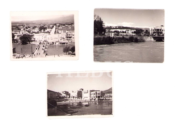 3 adet şehir görseli, ikisinin arkasında bayram tebriği mevcut, 7x9 cm, yıpranmış haliyle