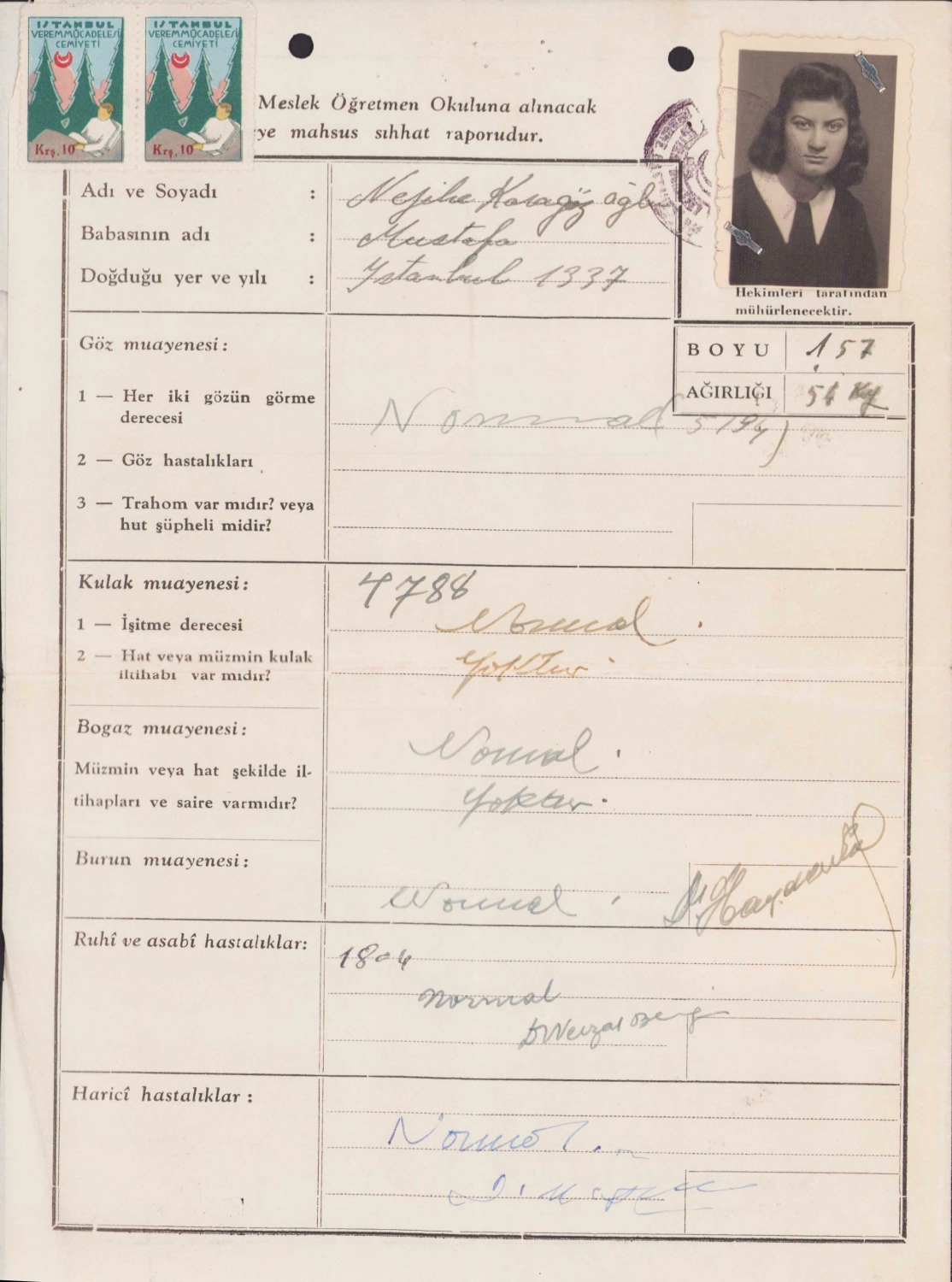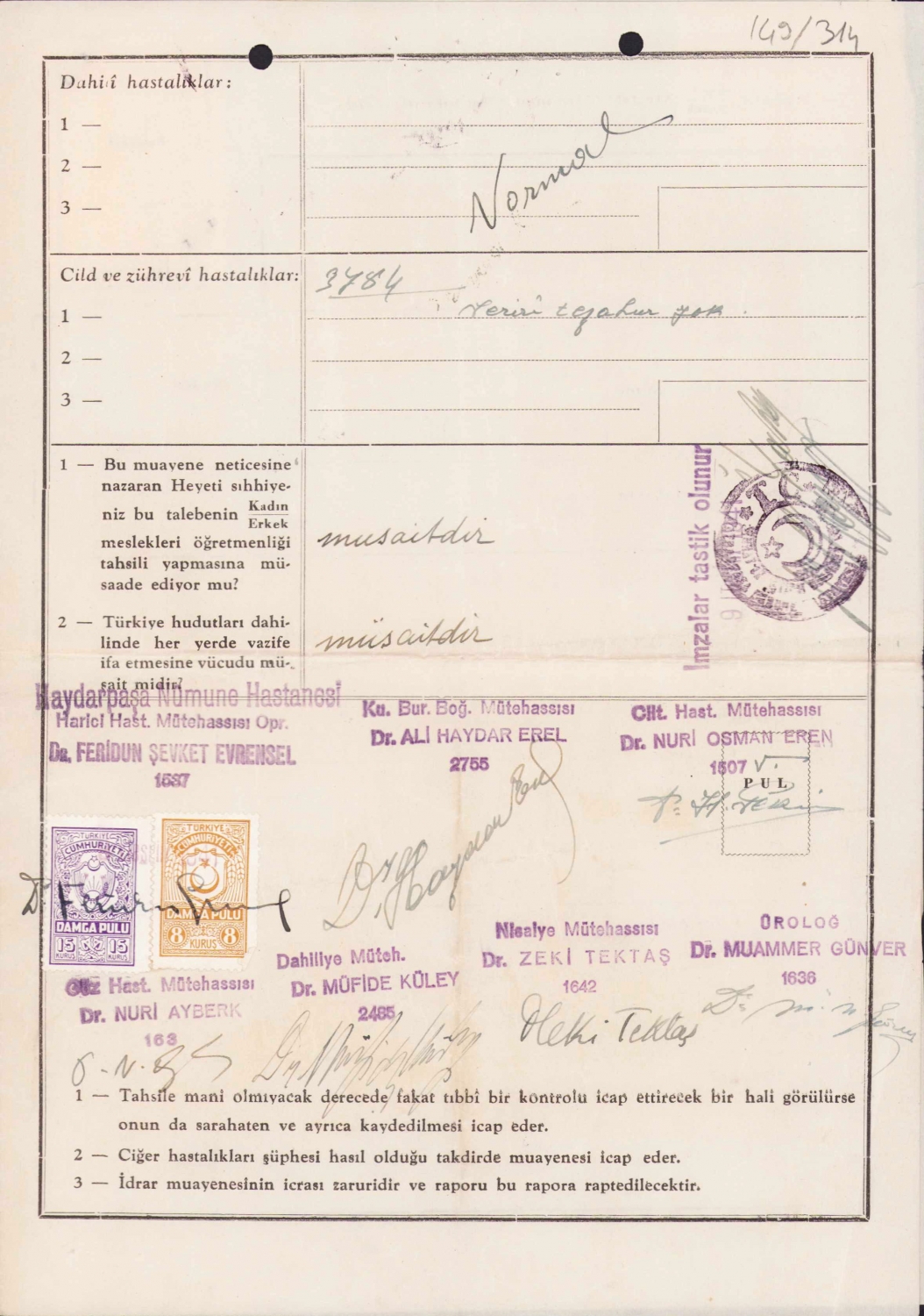 Sıhhat Raporu, Haydarpaşa Numune Hastanesi mühürlü, 2 yaprak, 4 sayfa, fotoğraflı, 1941 tarihli, 20x28cm