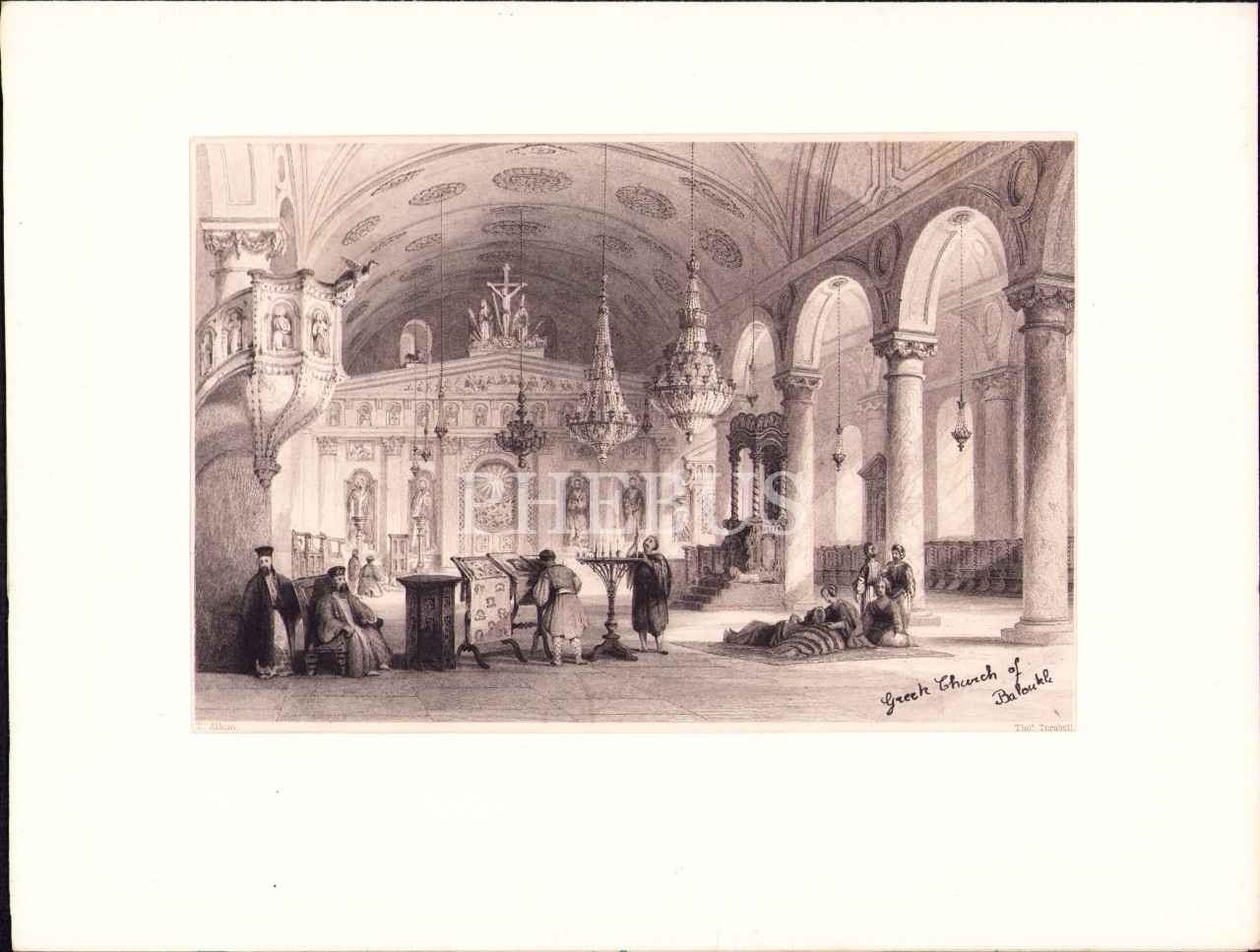 Balıklı Rum Kilisesi gravürü, ed. T. Allom-Turnbull, paspartulu, 20x27 cm