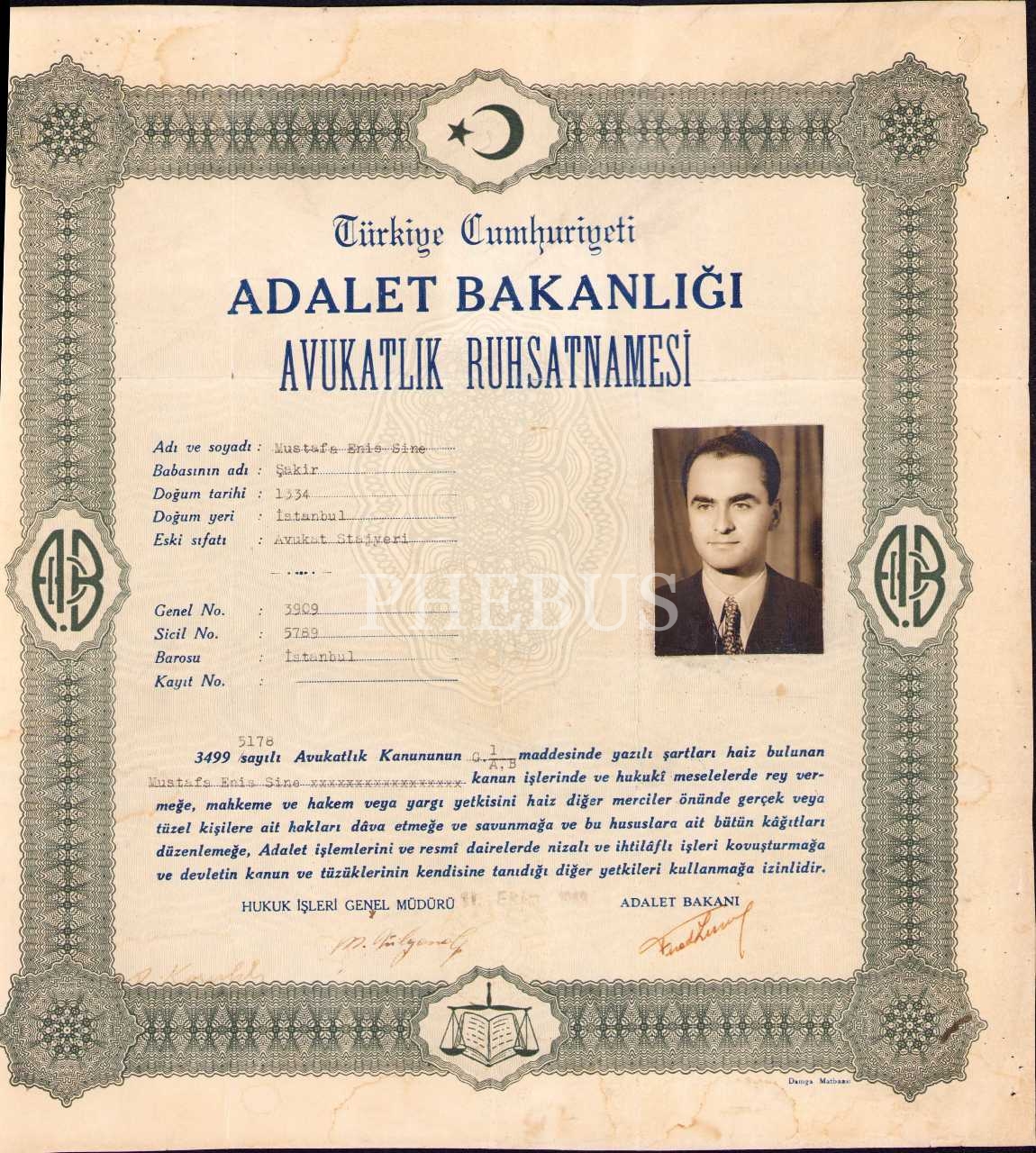 Fotoğraflı avukatlık ruhsatnamesi, 31x33 cm, yıpranmış haliyle