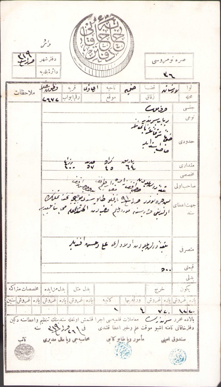 Osmanlıca Defterhane-i Hakani antetli mülk tapusu, Hopa/Lazistan 1319, 16x28 cm