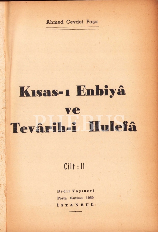 Kısas-ı Enbiyâ ve Tevârih-i Hulefâ [2 cilt], Ahmed Cevdet Paşa, Bedir Yayınevi, İstanbul 1966, 722+692 s., 17x24 cm
