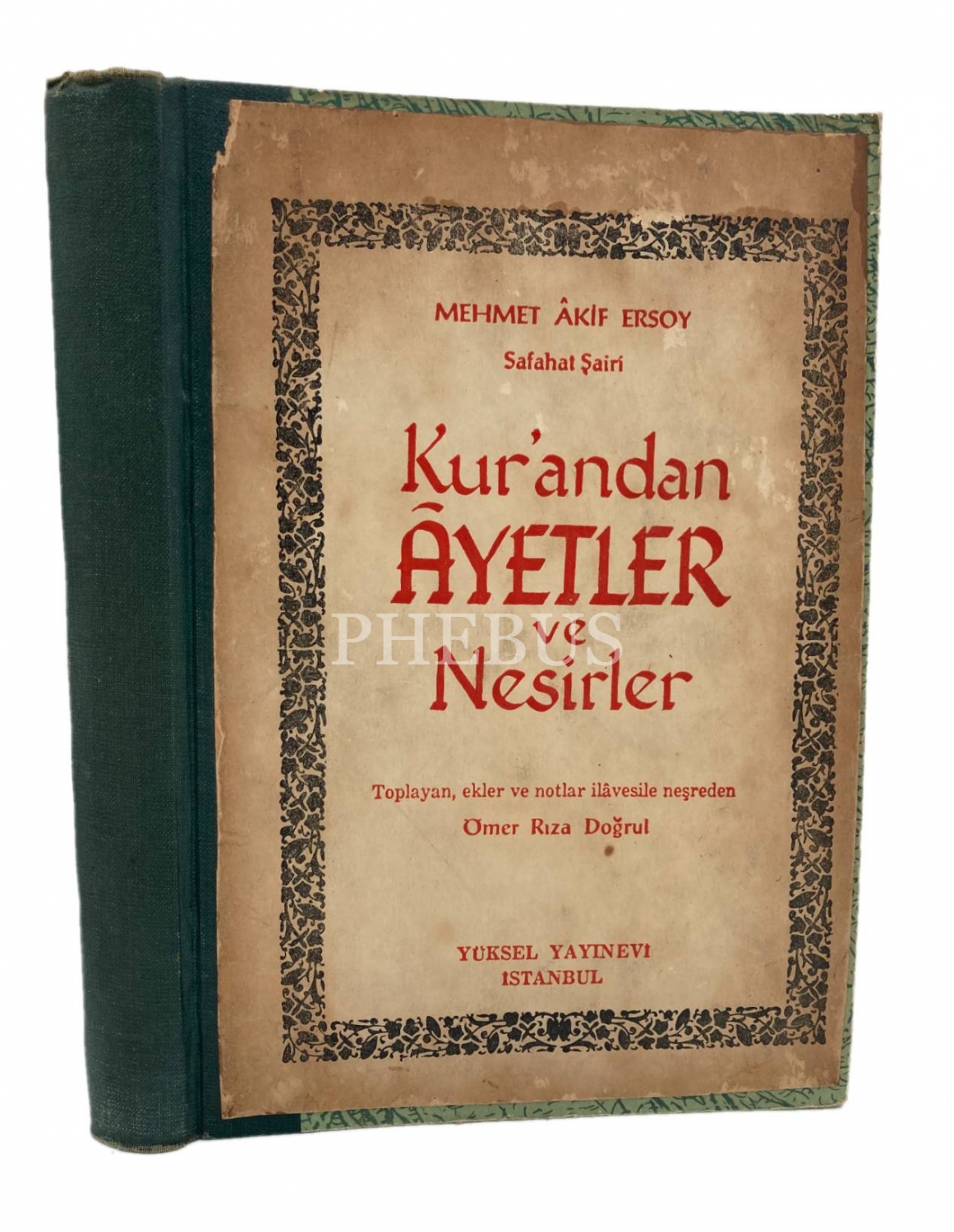 Kur'an'dan Âyetler, çev. Mehmet Âkif Ersoy, derl. Ve haz. Ömer Rıza Doğrul, Yüksel Yayınevi, İstanbul 1944, 375 s., 16x23 cm, son sayfası yıpranmış haliyle