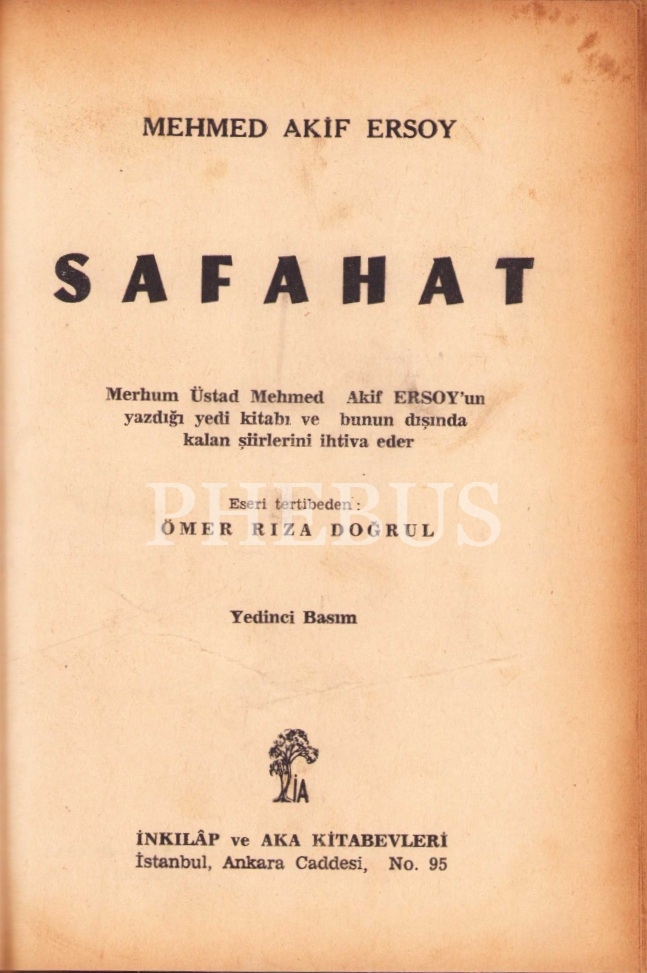 Safahat, Mehmed Akif Ersoy, haz. Ömer Rıza Doğrul, İnkılâp ve Aka Kitabevleri, 560 s., 14x20 cm