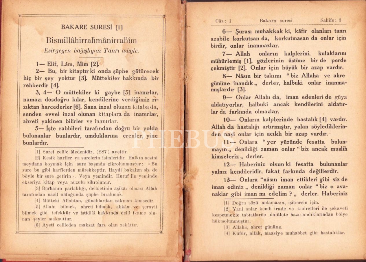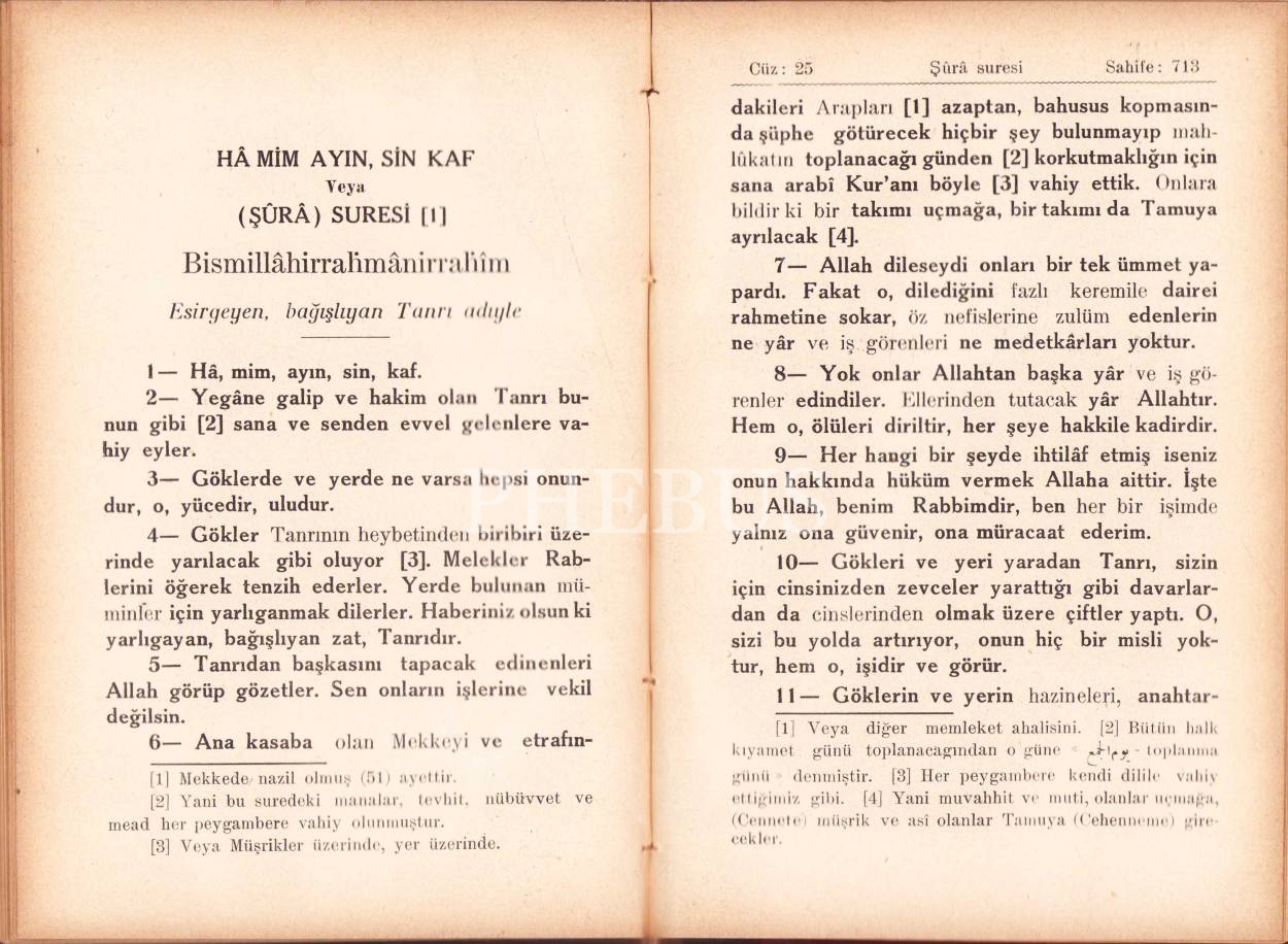 Türkçe Kuranı Kerim Tercümesi-Şerh ve İzahlı [1. cilt], İzmirli İsmail Hakkı, Hilmi Kitaphanesi, İstanbul 1932, 965 s., 14x20 cm, sırtı ile künye sayfası ayrık ve cildi hafif yıpranmış haliyle
