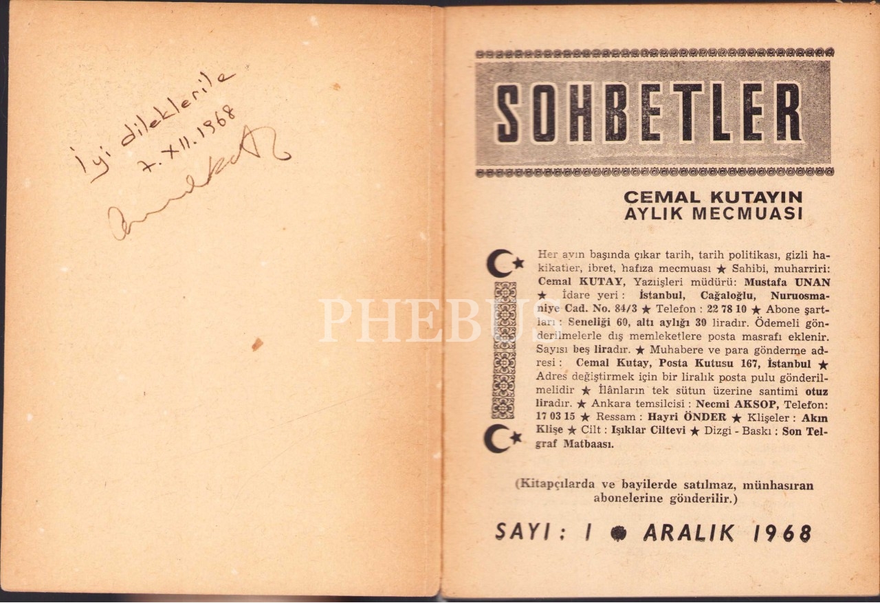İthaf, "İyi dileklerile 7.XII.1968 Cemal Kutay" şeklindedir.