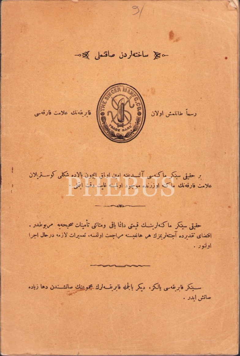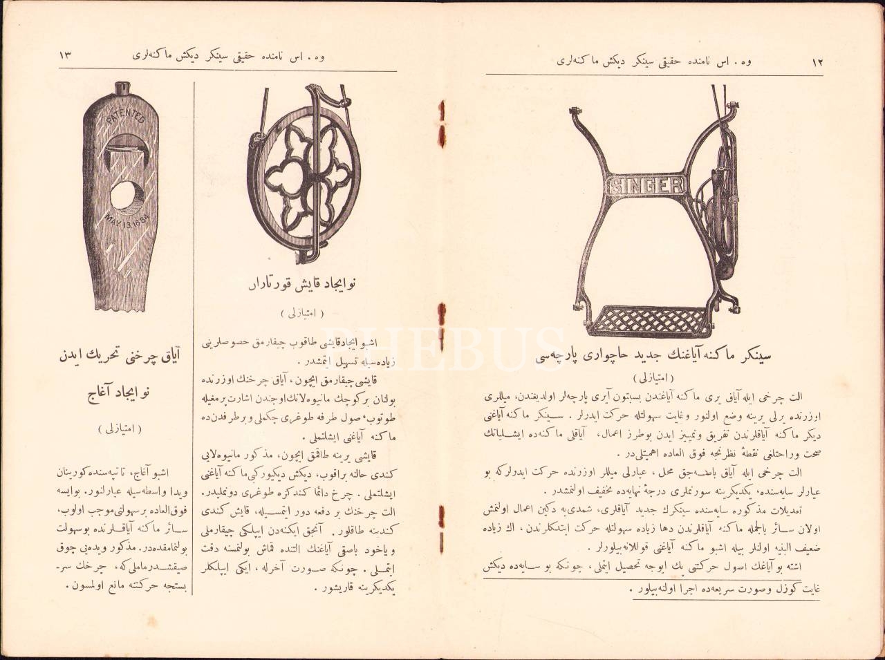 Singer marka dikiş makinelerine ait Osmanlıca kullanım kılavuzu, 16x23 cm, yorgun haliyle