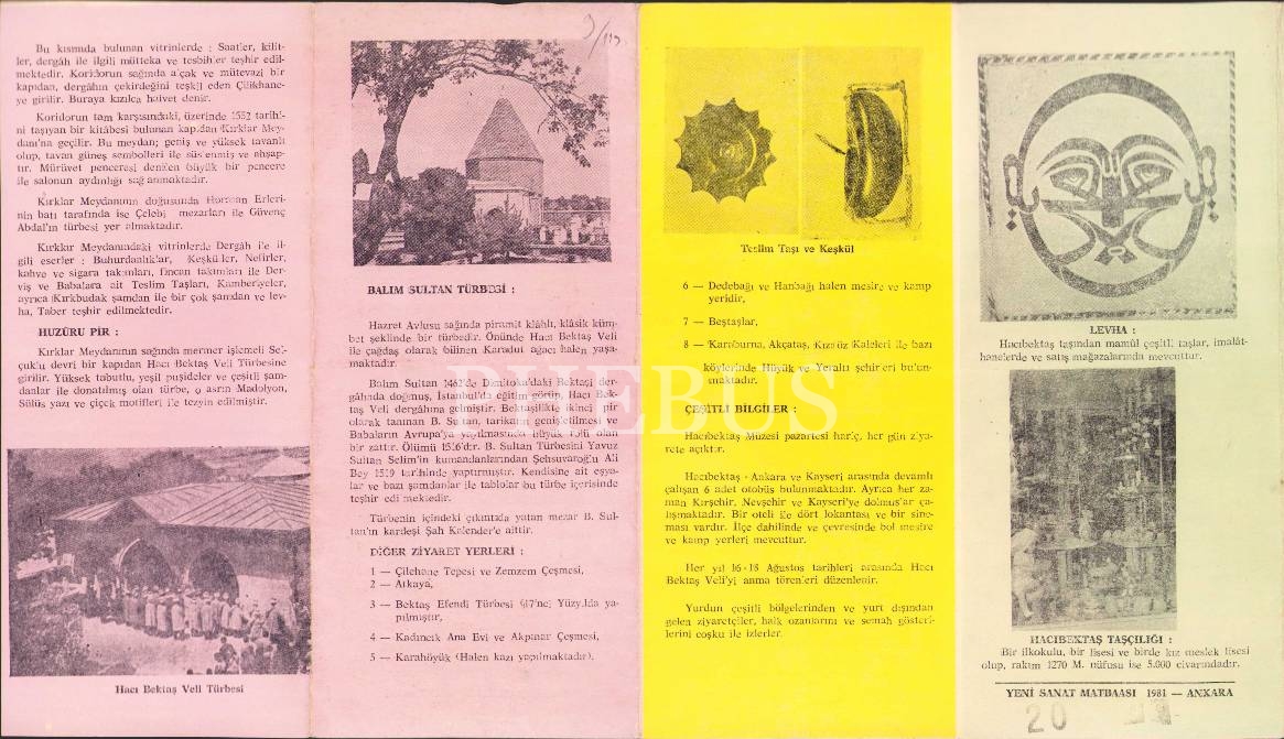 Hacıbektaş Anıtlar Derneği yayınlarından Hacıbektaş Türbesi tanıtım rehberi, 22x48 cm, yorgun haliyle