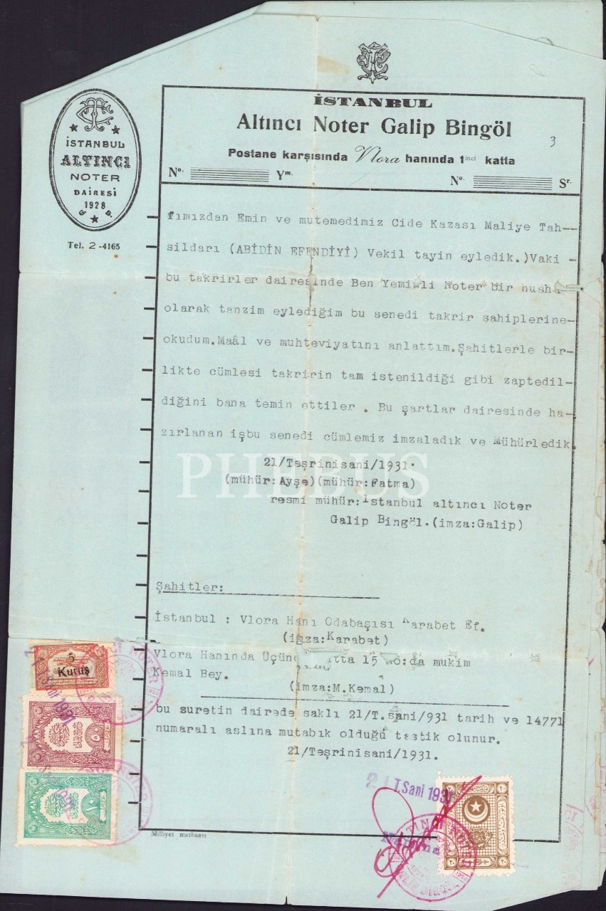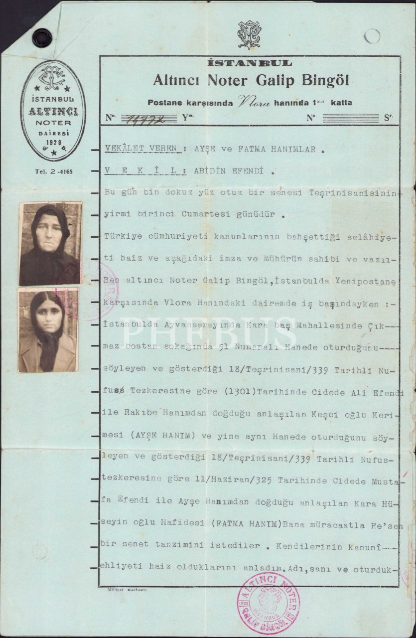 İstanbul Altıncı Noter Dairesi'nden fotoğraflı vekaletname, 21 Teşrinisani 1931, 3 sayfa, 20x30 cm, yıpranmış haliyle