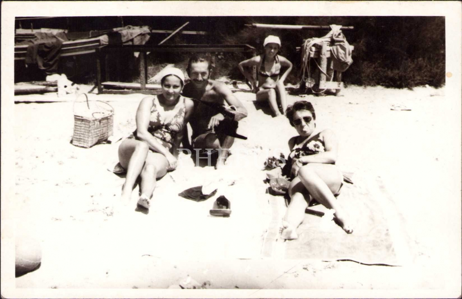 Kumsalda hatıra fotoğrafı, köşeleri hafif yıpranmış haliyle