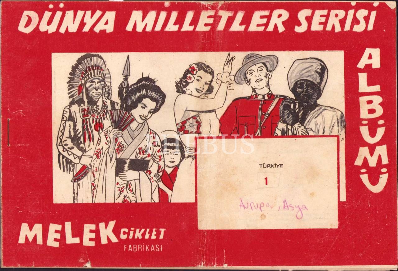 Melek Çiklet Fabrikası'ndan Dünya Milletler Serisi Albümü, 16x24 cm, yıpranmış haliyle