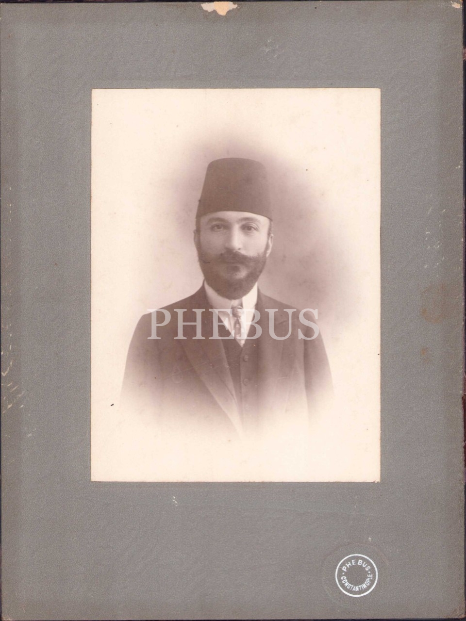 Fesli beyefendi fotoğrafı, Phebus-Constantinople, foto: 10x14 cm, paspartunun üst kenarı soyulmuş haliyle
