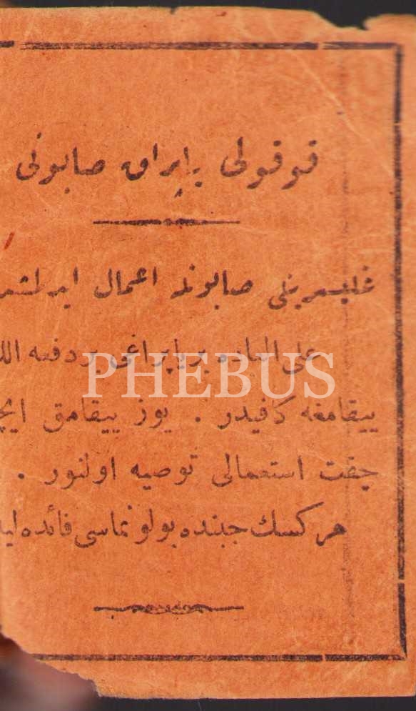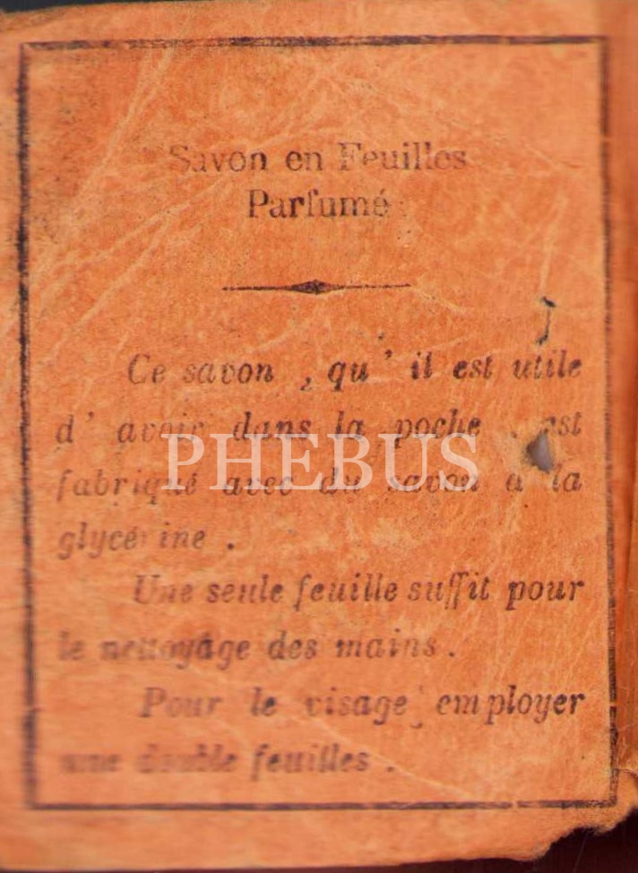 Osmanlı döneminden yaprak sabun, "İmalat-ı Harbiye Makriköy [Bakırköy] Fabrikaları Mamulatı", 25 yaprak, 6x8 cm, yıpranmış haliyle