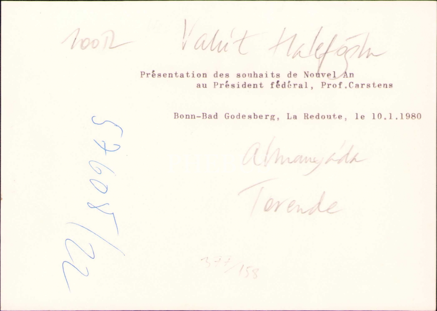 Türkiye Dışişleri Bakanı Vahit Melih Halefoğlu, Almanya'nın Bad Godesberg ilçesinde bir törende iken, 1980 tarihli, 12x17 cm