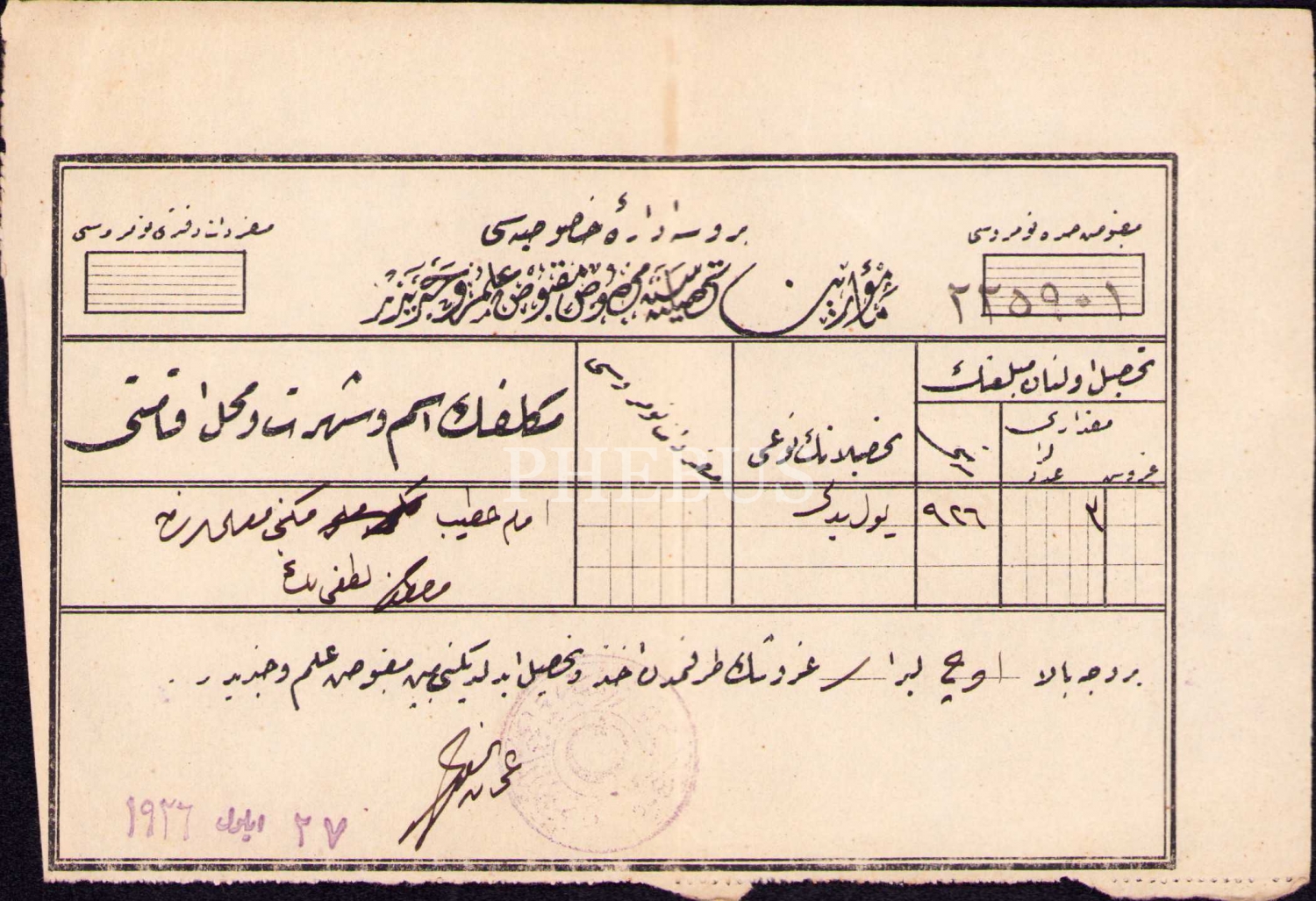 Osmanlıca Bursa İdare-i Hususiyesi antetli makbuz, 1926 tarihli, 12x17 cm