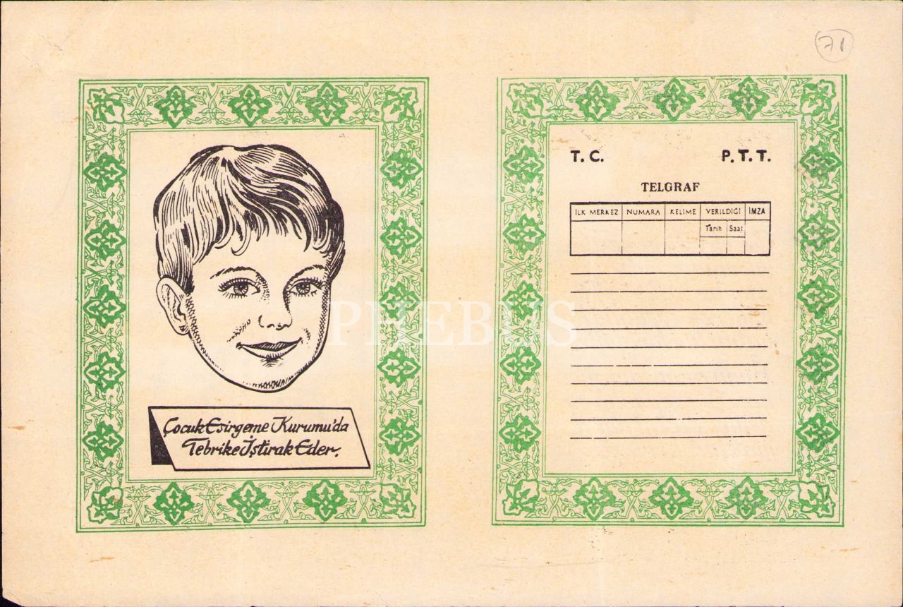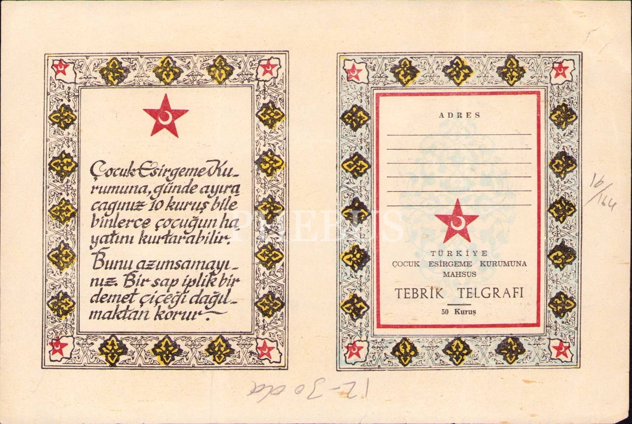 Türkiye Çocuk Esirgeme Kurumu [boş] tebrik telgrafı, 16x23 cm, hafif yıpranmış haliyle