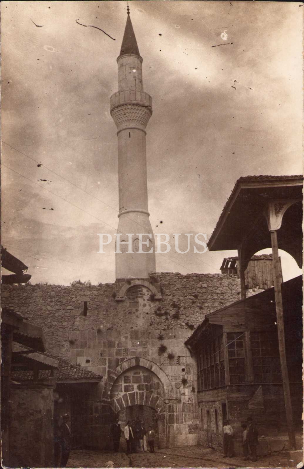 Cami minaresi, arkası Osmanlıca yazılı, kenarları hafif soyulmuş haliyle