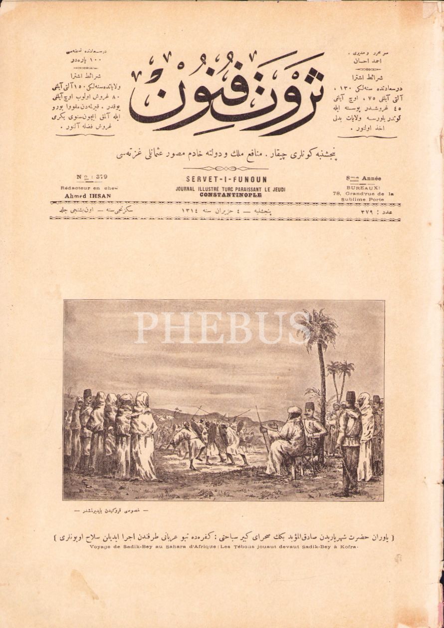 Ön kapak görseli: "Yaveran-ı Hazret-i Şehriyari'den Sadık el-Müeyyed Bey'in Sahra-yı Kebir Seyahati" *1891-1944 yılları arasında yayımlanan ve Edebiyat-ı Cedide topluluğunun yayın organı olan Servet-i Fünun dergisi, Türk basın tarihinin en uzun süreli ve en etkili dergilerindendir.