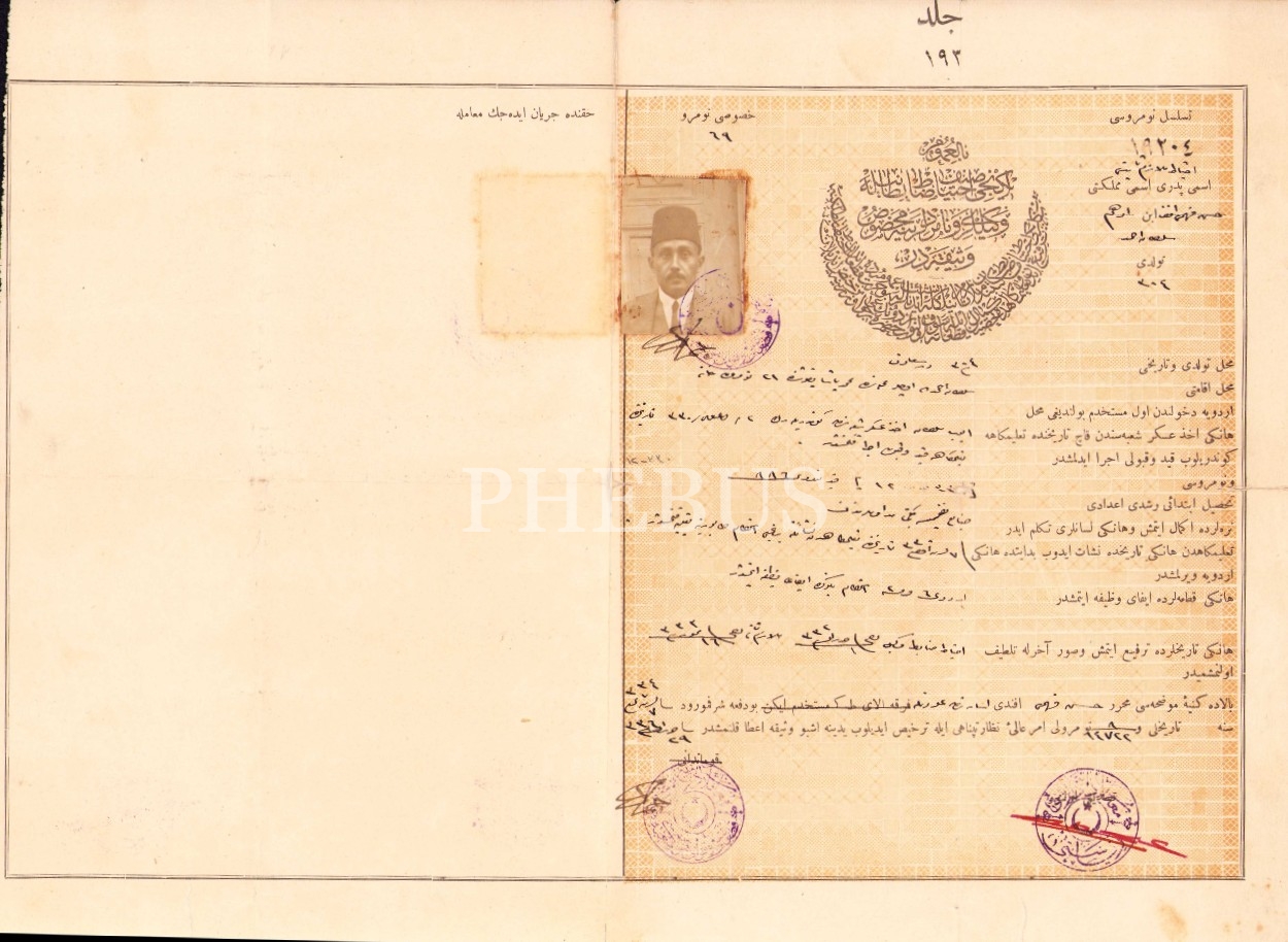 Osmanlıca "İkinci Sınıf İhtiyat Zabitanıyla Vekilleri ve Namzedlerine" ait fotoğraflı bilgi döküm belgesi, 28x38 cm, yıpranmış haliyle