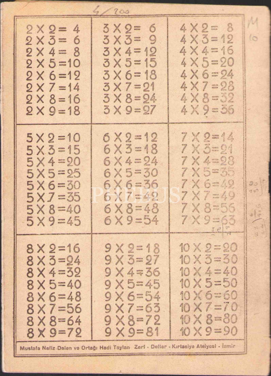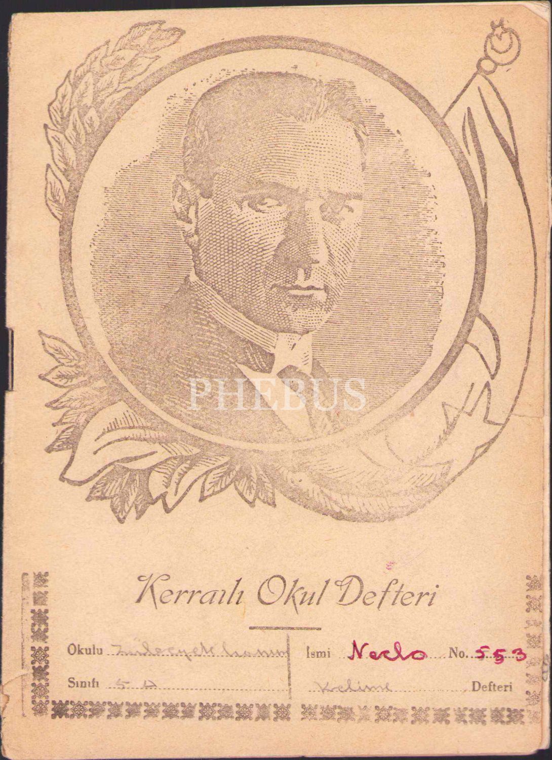 Atatürk kapaklı kerratlı [çarpım tablosu] okul defteri, 1944 tarihli, 13x18 cm, hafif yıpranmış haliyle