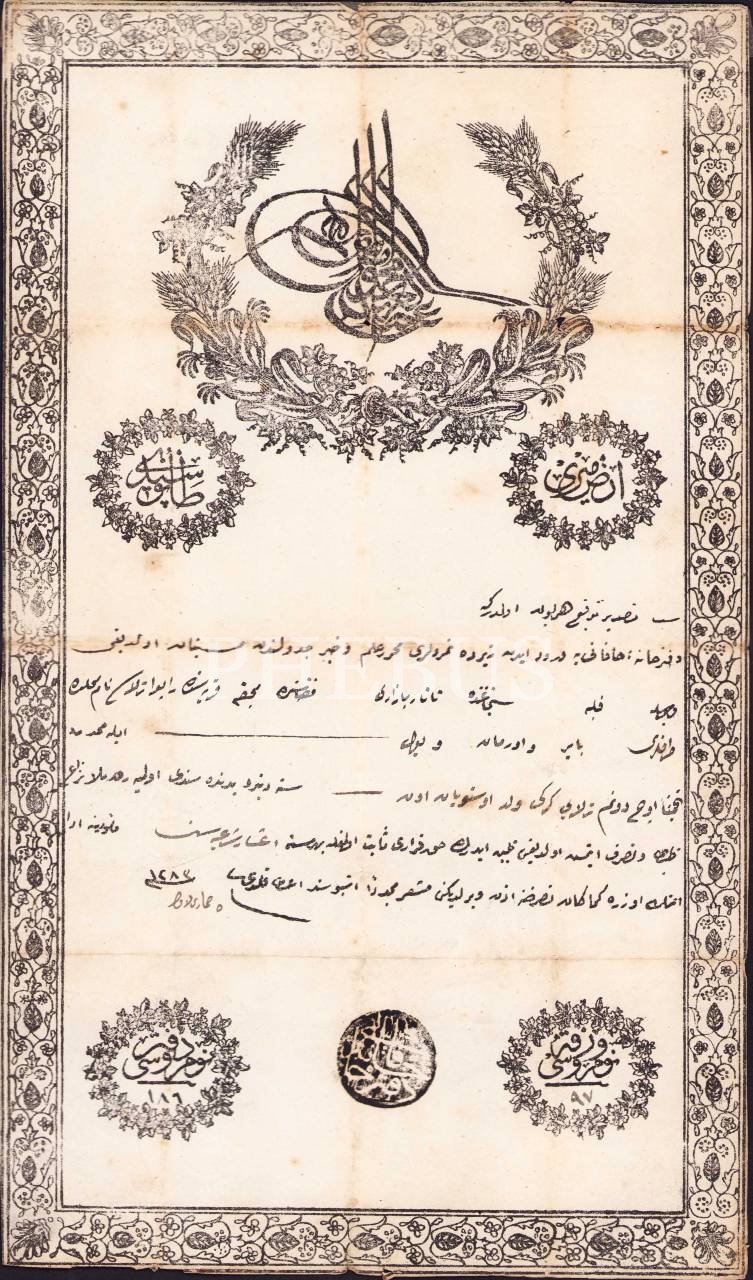 Osmanlıca arz-ı miri tarla tapu senedi, Filibe/Bulgaristan 1283, 18x31 cm, hafif yıpranmış haliyle