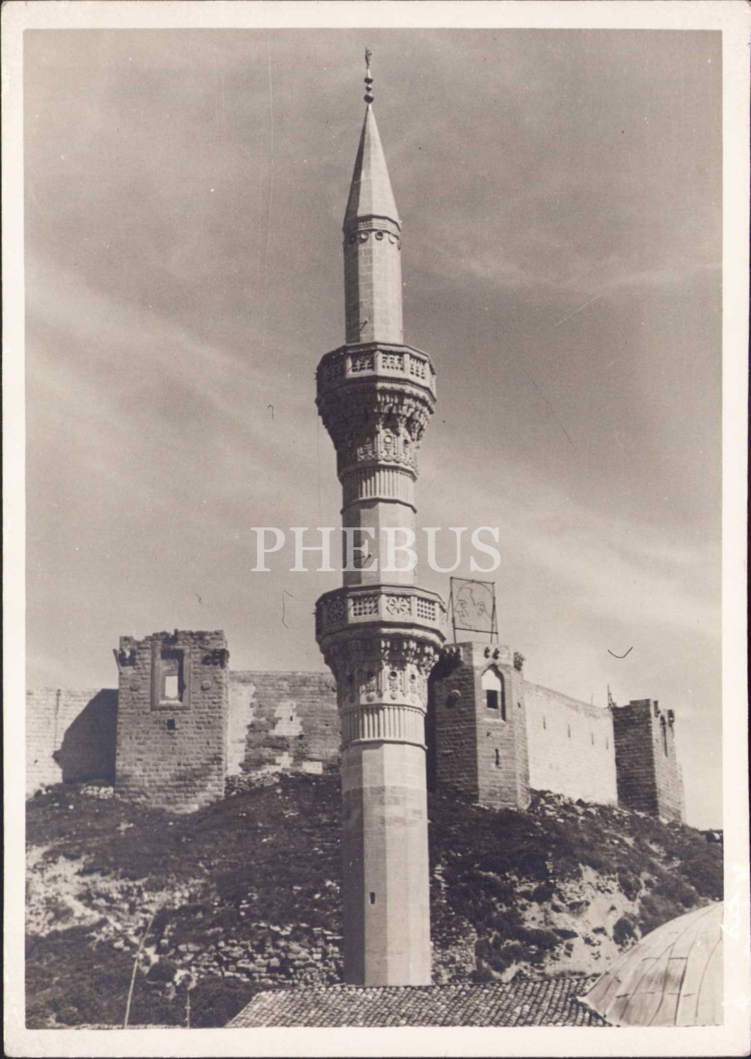 Atatürk portresinin dikili olduğu kale önünde minare görseli, 12x18 cm