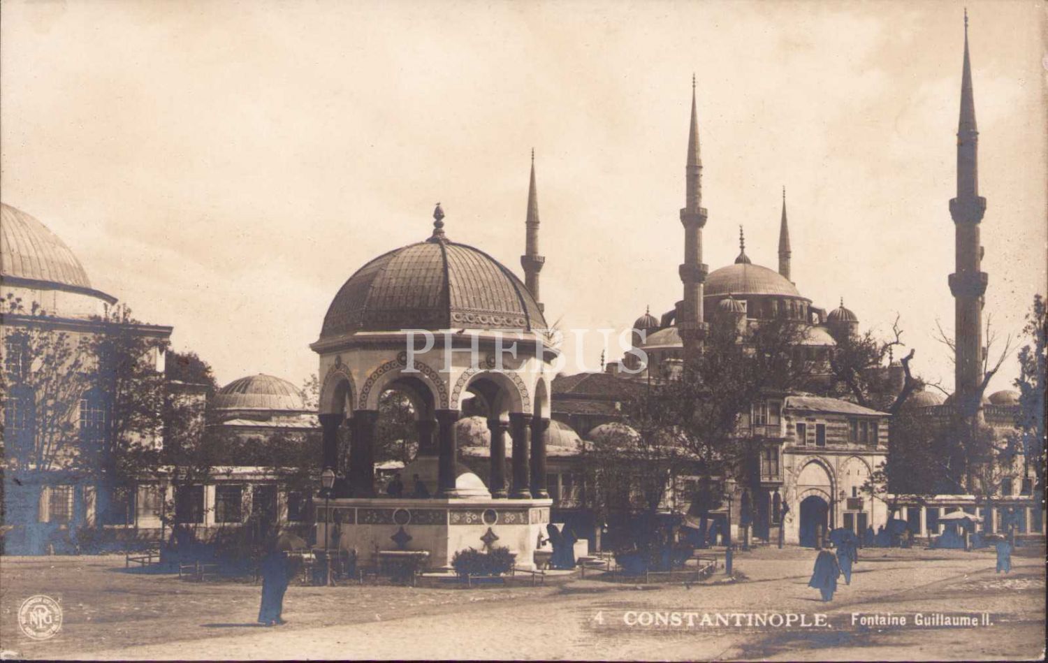 Sultanahmet Camii ve Alman Çeşmesi, Constantinople, arkası Fransızca yazılı, kenarları hafif soyulmuş haliyle