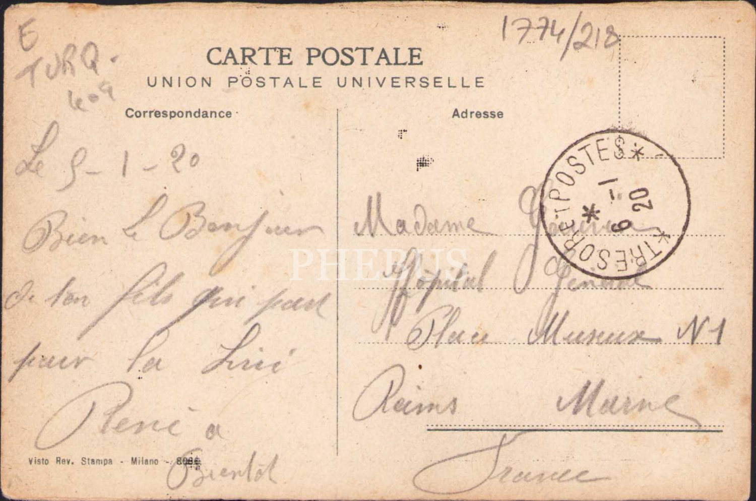 Üsküdar Kız Kulesi, Constantinople, arkası yazılı, yıpranmış haliyle