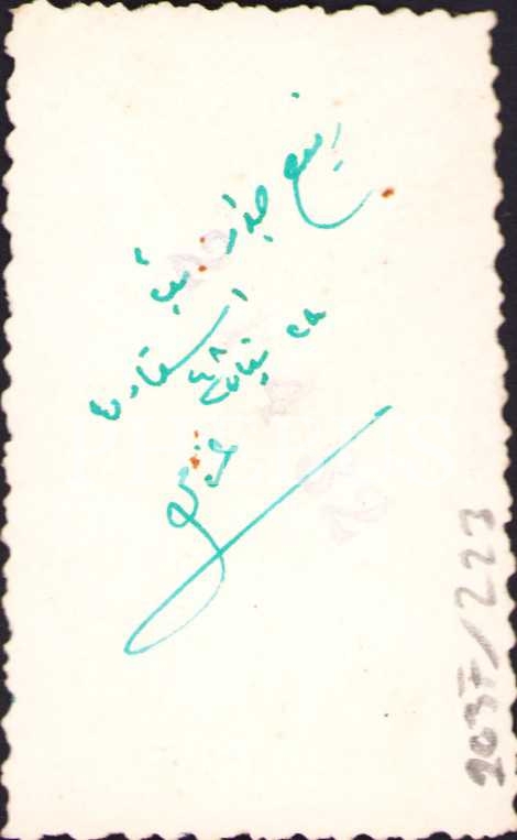 Azmi Nihat Erman'dan Gazeteci Refi' Cevad Ulunay'a Osmanlıca ithaflı fotoğraf, 1948 tarihli, 4x6 cm