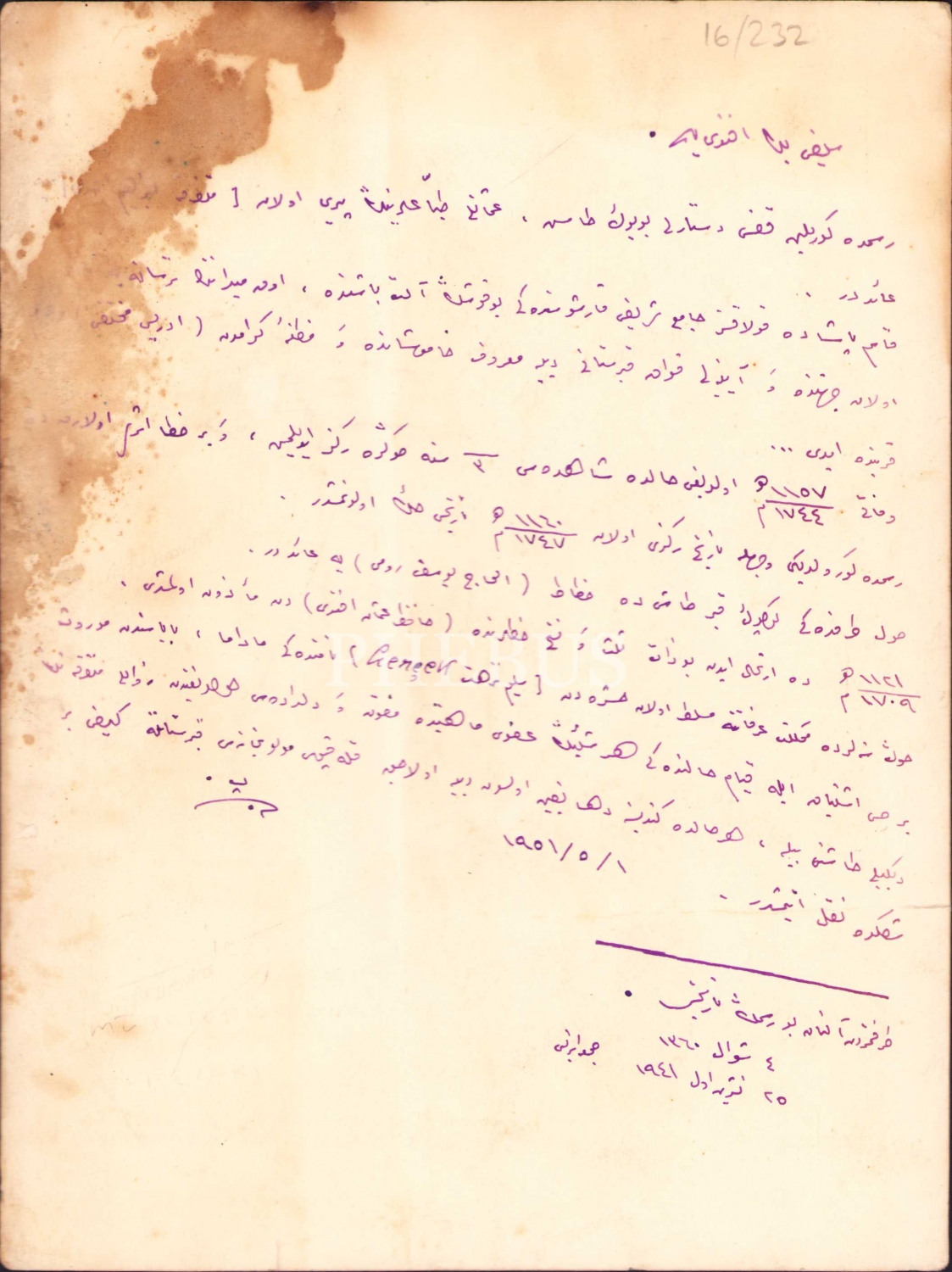 Osmanlı İmparatorluğu'na Matbaayı Getiren İlk Müslüman Olan İbrahim Müteferrika'ya ait mezar taşı, 1941 tarihli, arkasında Osmanlıca açıklama mevcut, 18x24 cm, yıpranmış haliyle