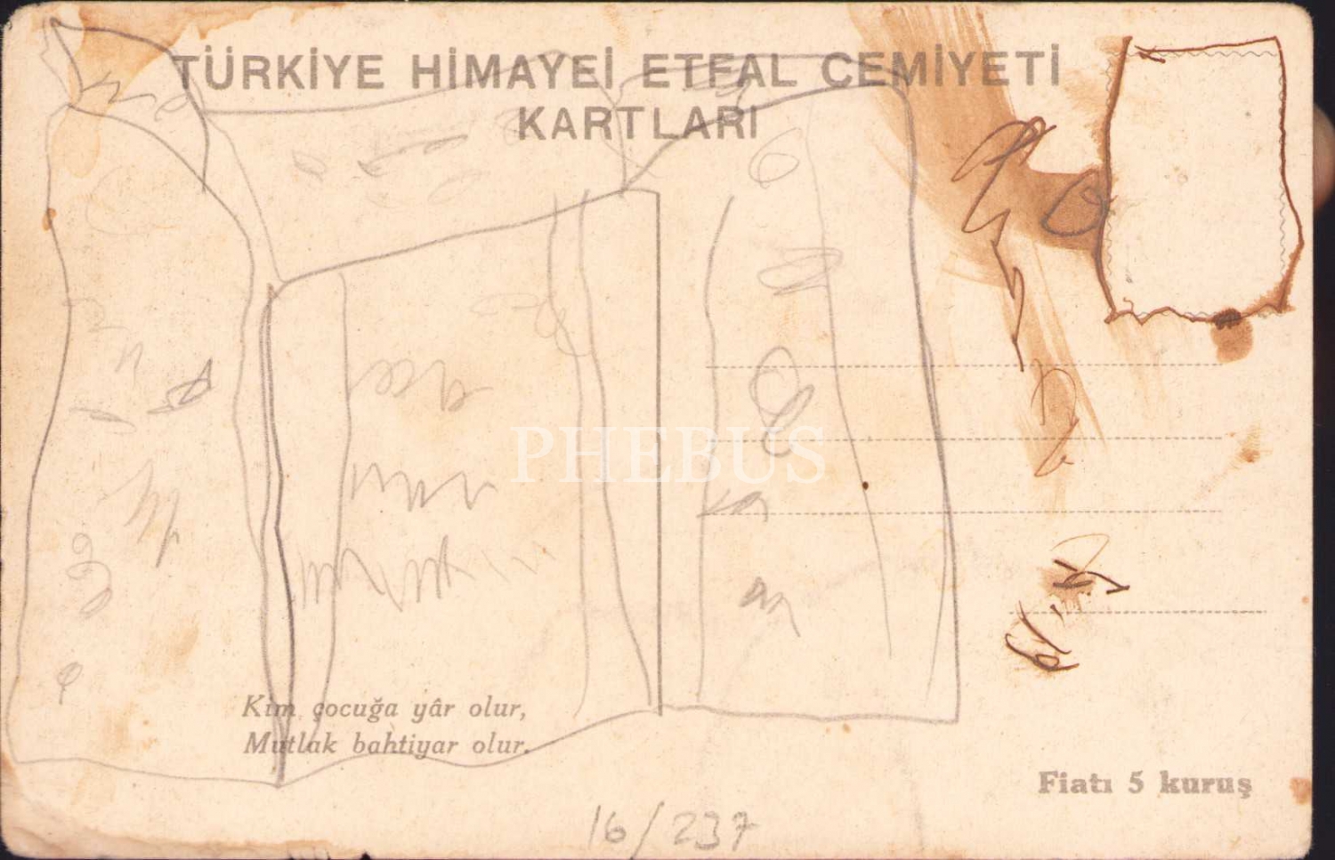 Türkiye Himayei Etfal Cemiyeti kartpostalı, epey yıpranmış haliyle