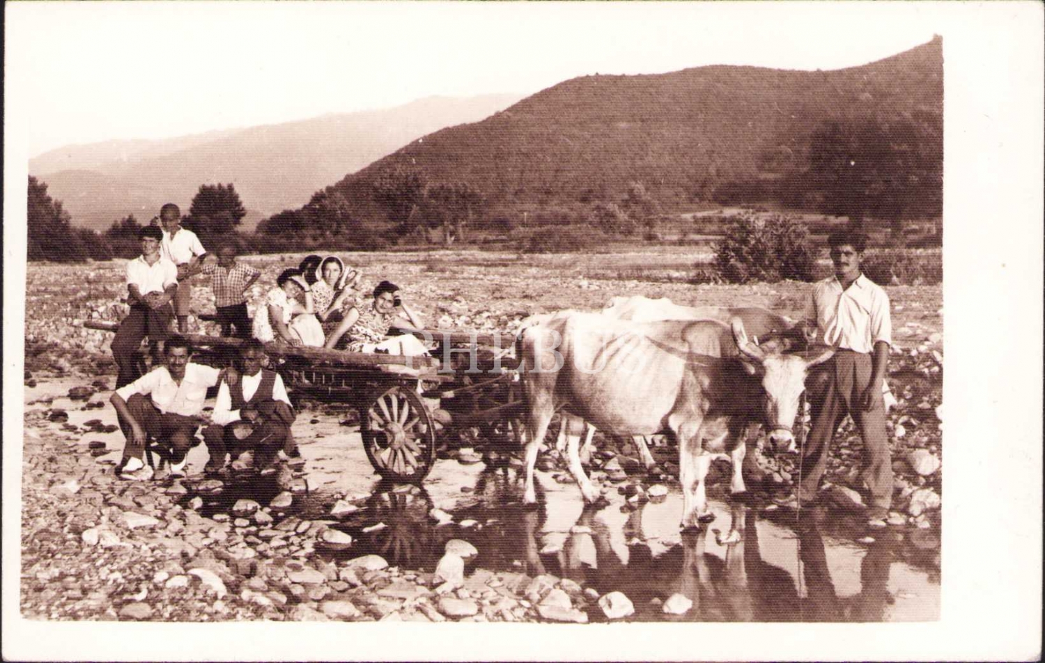 Öküz arabasında topluluk hatıra fotoğrafı, yorgun haliyle
