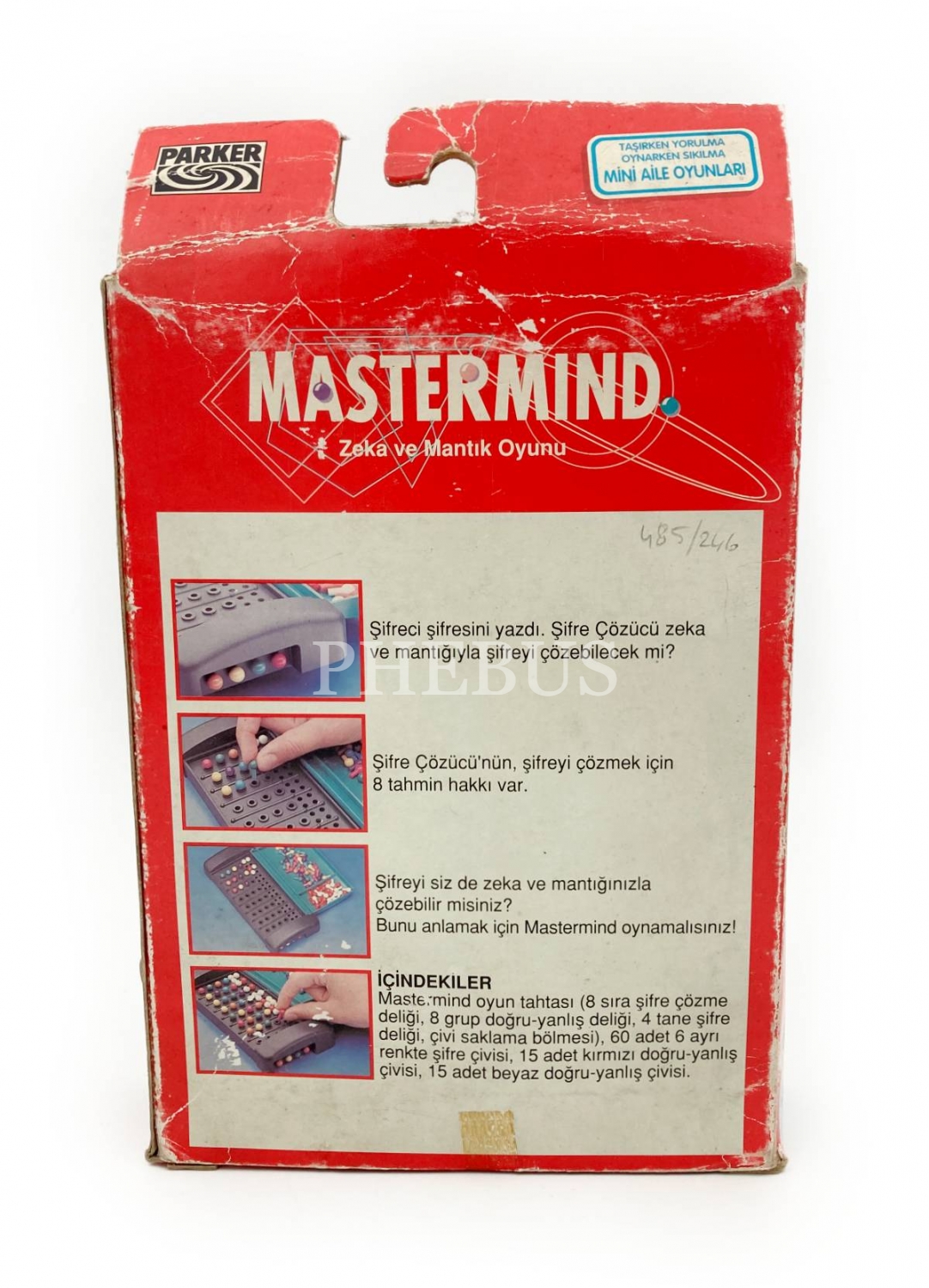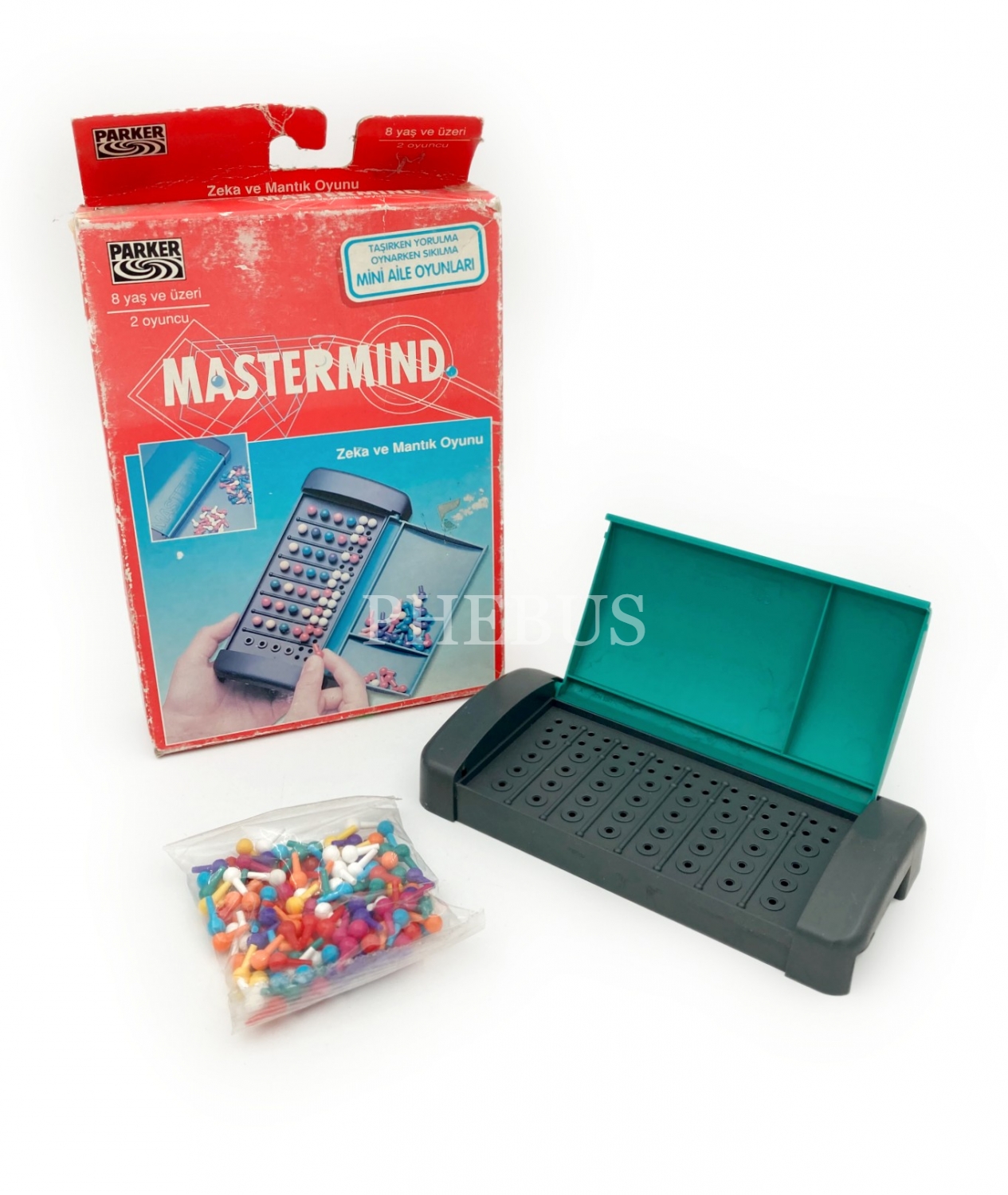 Orijinal kutusunda Mastermind Zeka ve Mantık Oyunu, İngiltere üretimi, kutu: 14x20 cm, kutusu yıpranmış haliyle