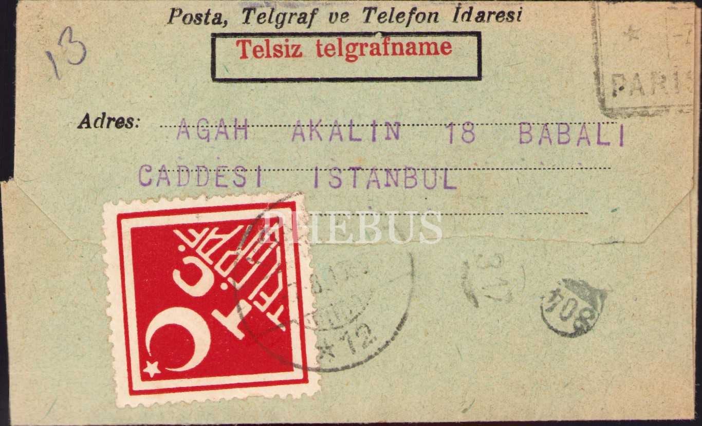 Agah Akalın alıcılı açılmamış telgrafname, 7x11 cm, hafif yıpranmış haliyle